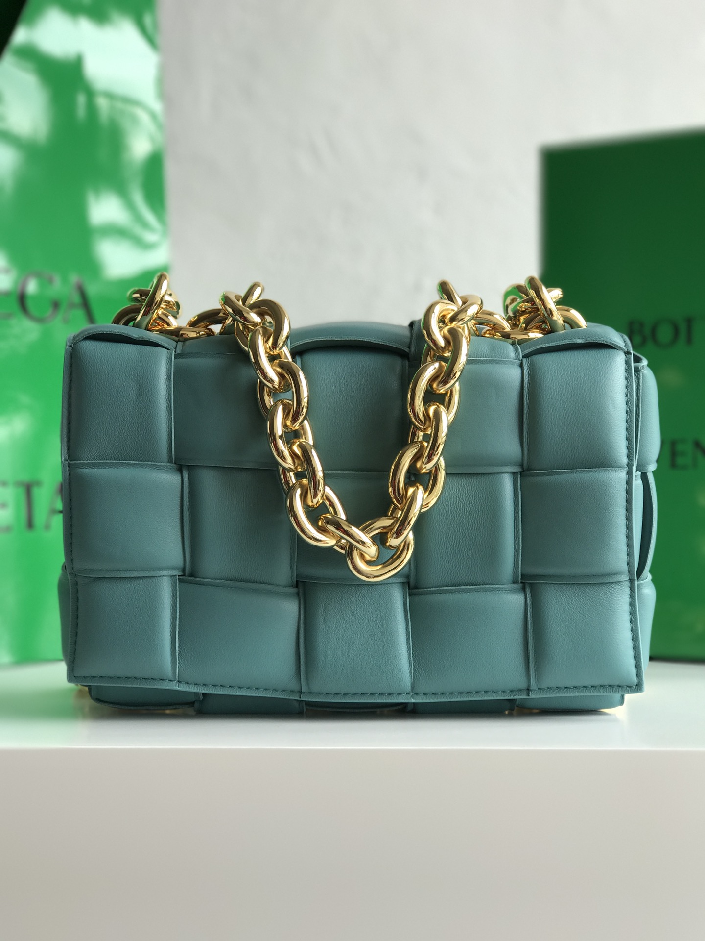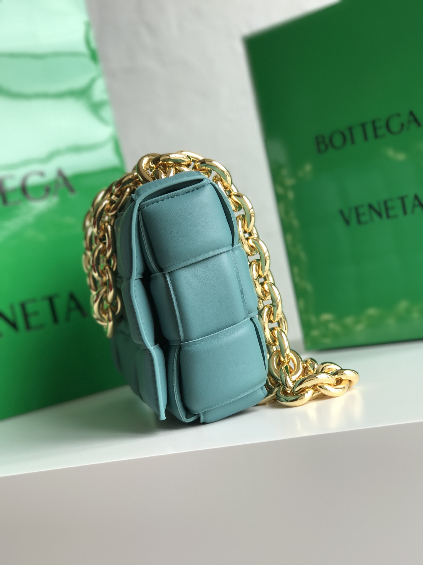 보테가의 체인 카세트 백은 독특한 디자인과 세련된 색감이 돋보입니다.