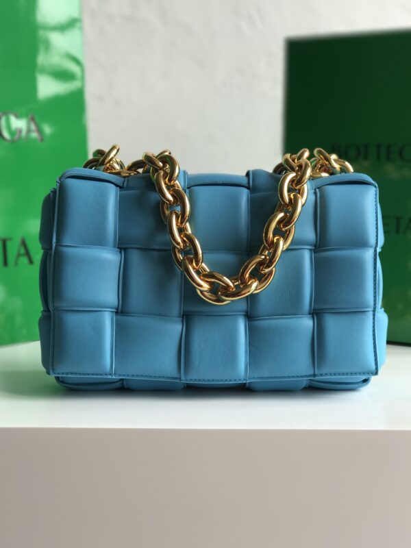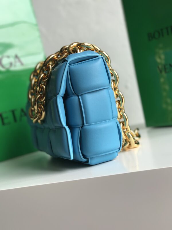 보테가의 체인 카세트 백은 독특한 디자인과 세련된 색감이 돋보입니다.