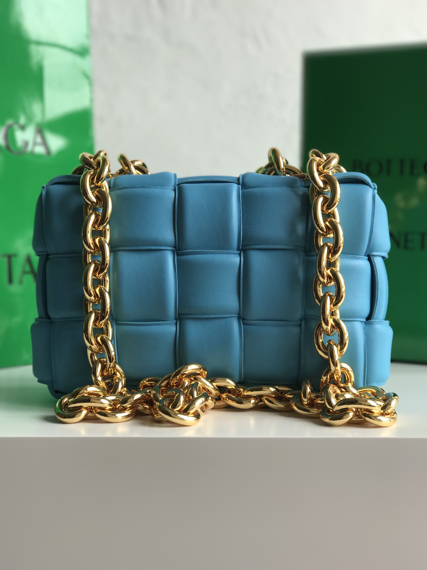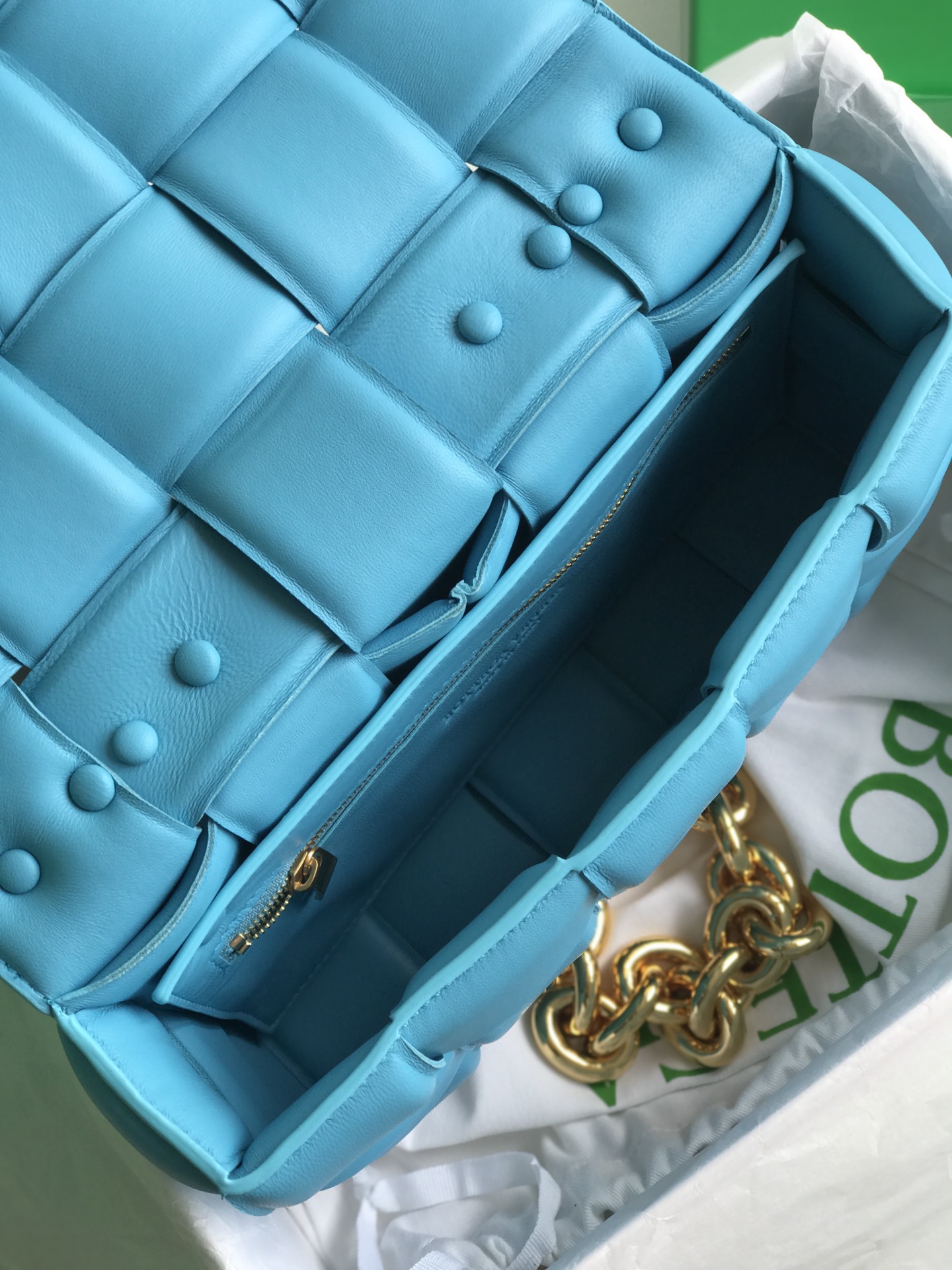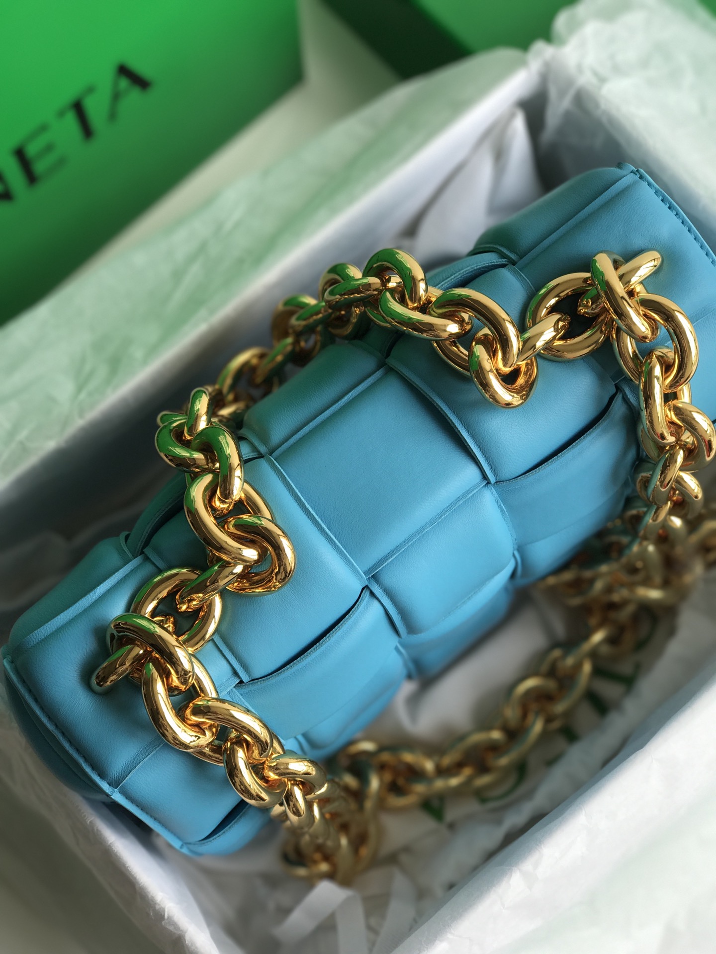 보테가의 체인 카세트 백은 독특한 디자인과 세련된 색감이 돋보입니다.