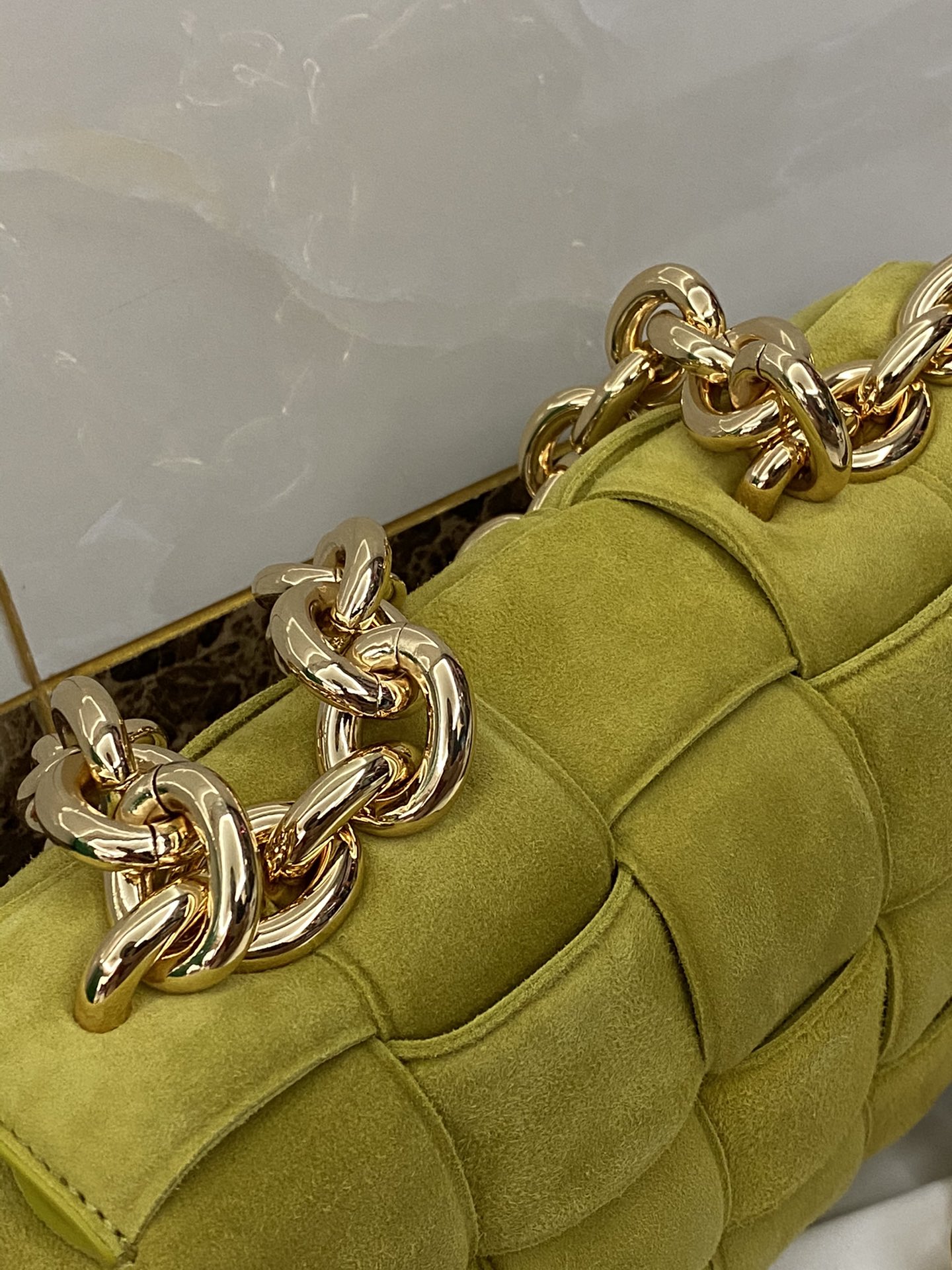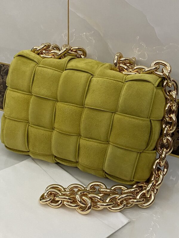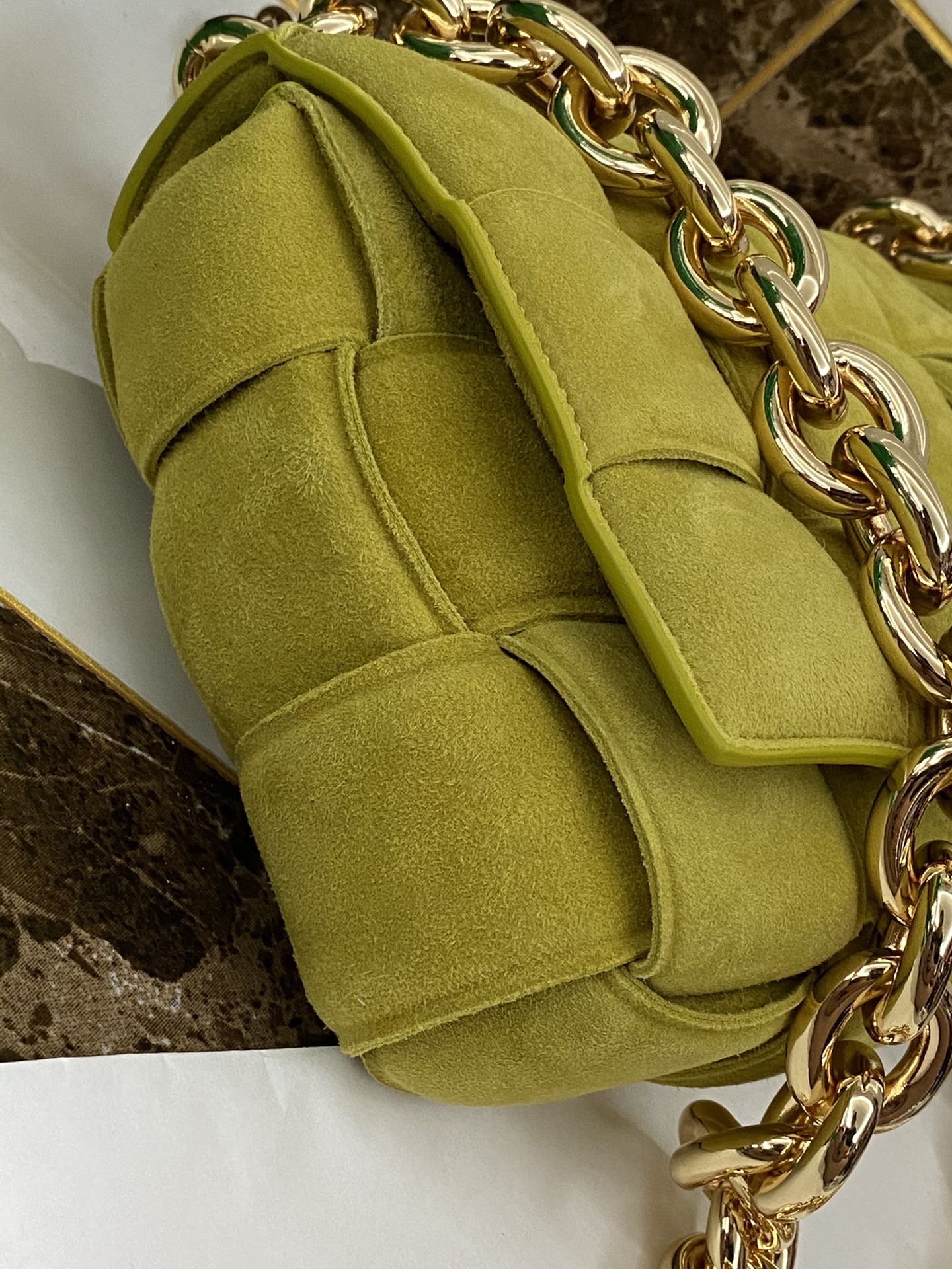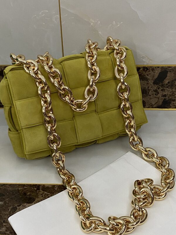 부드러운 양모 소재로 제작된 체인 카세트 백은 고급스러운 느낌을 자아냅니다.