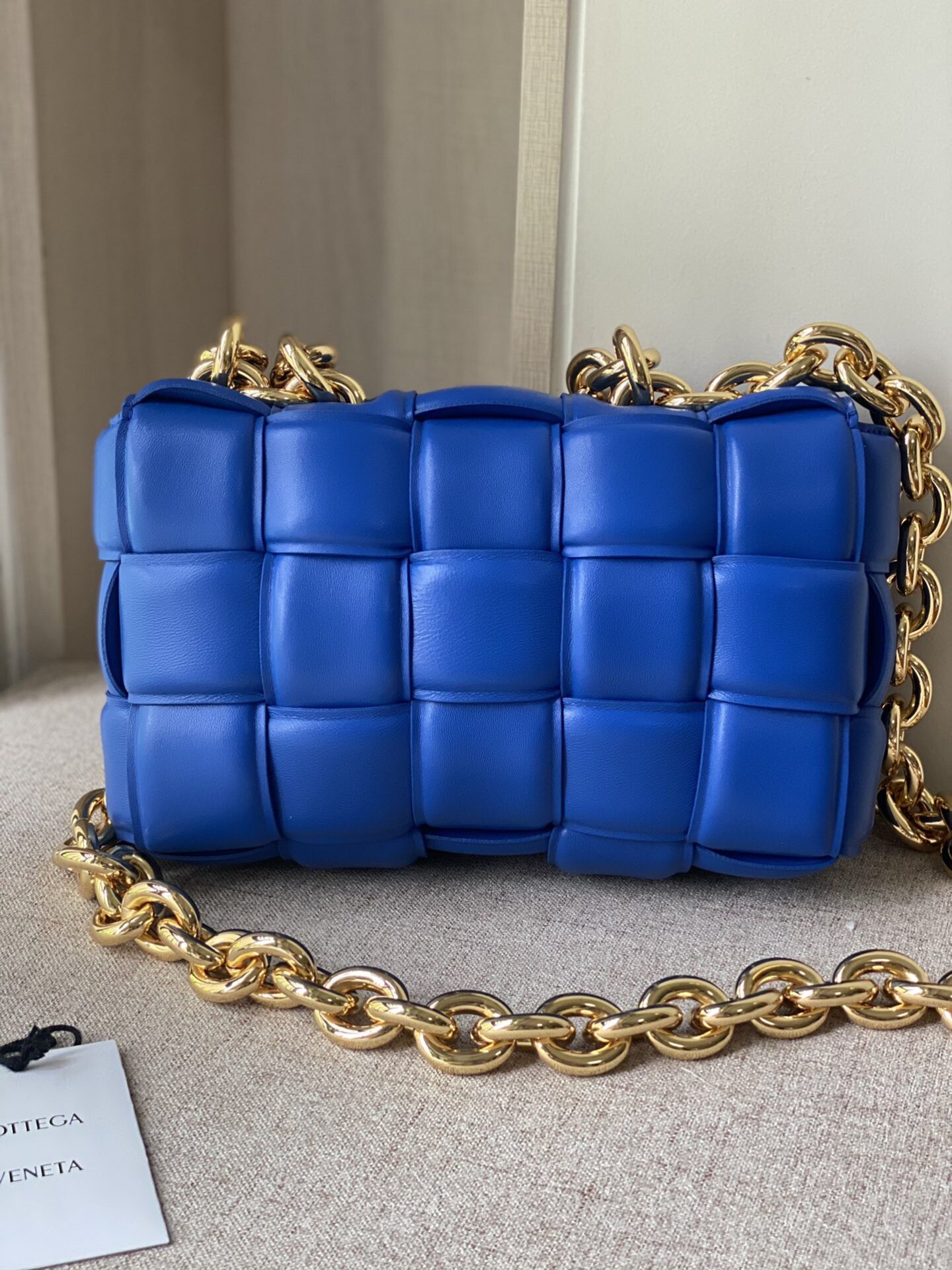 보테가의 체인 카세트 백은 독특한 디자인과 세련된 색감이 돋보이는 제품입니다.