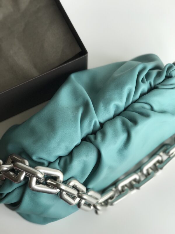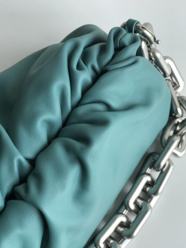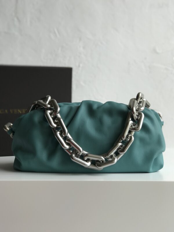 부드러운 패브릭 소재로 제작된 체인 파우치 클라우드 백은 고급스러운 그린 컬러가 매력적입니다.