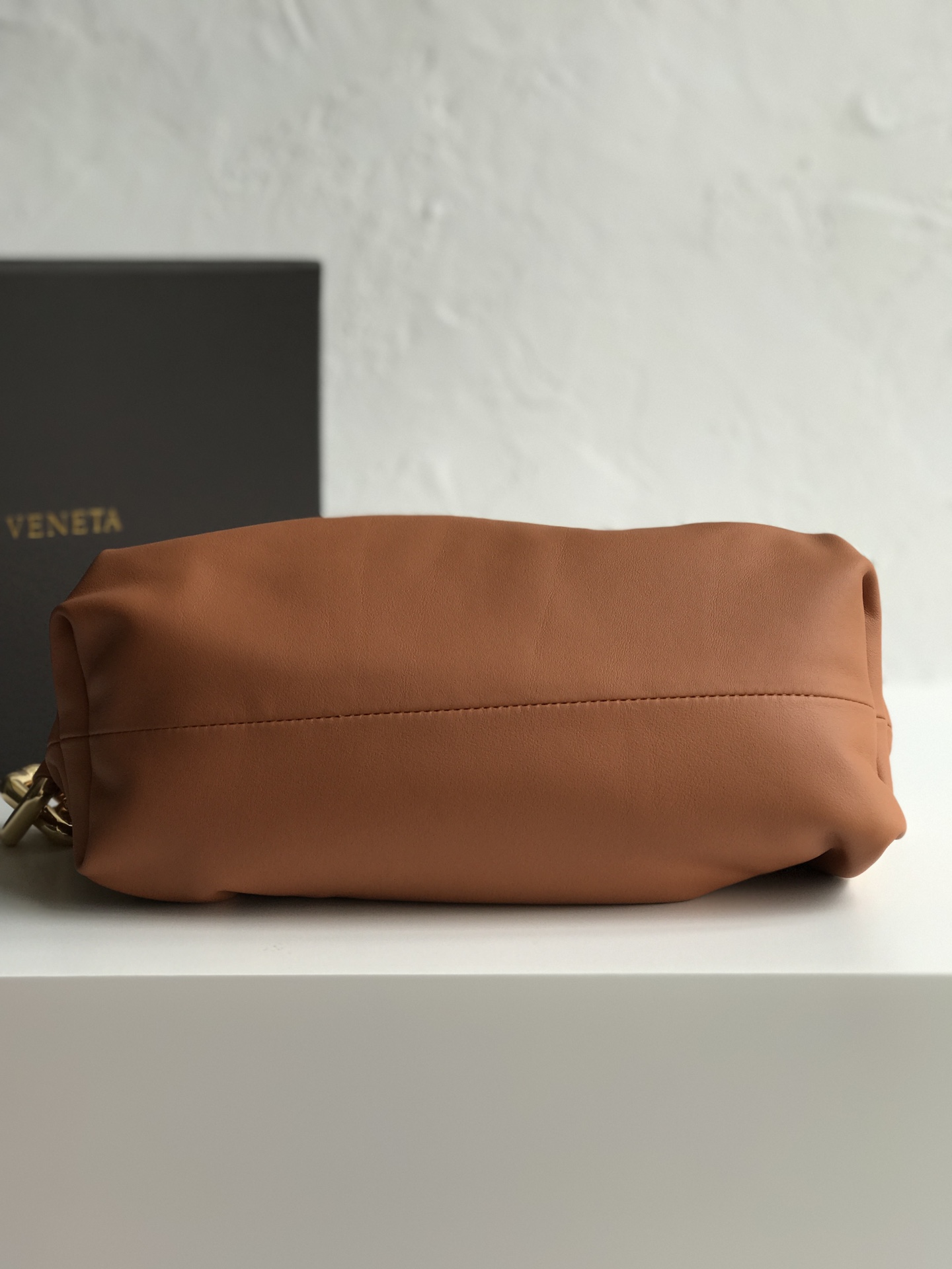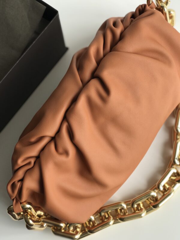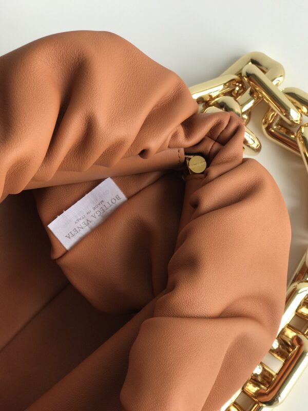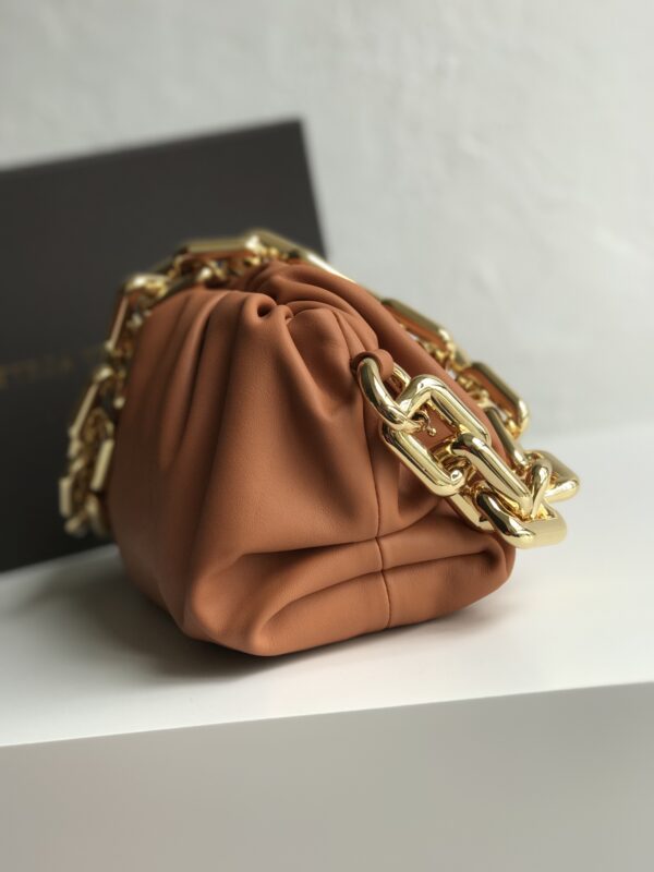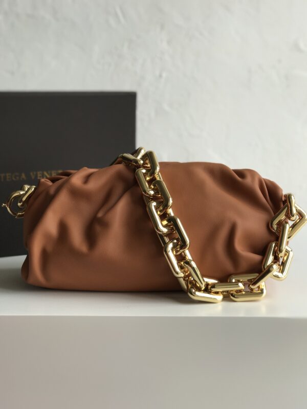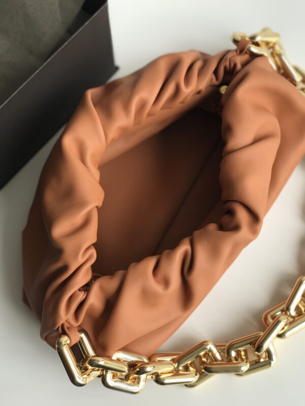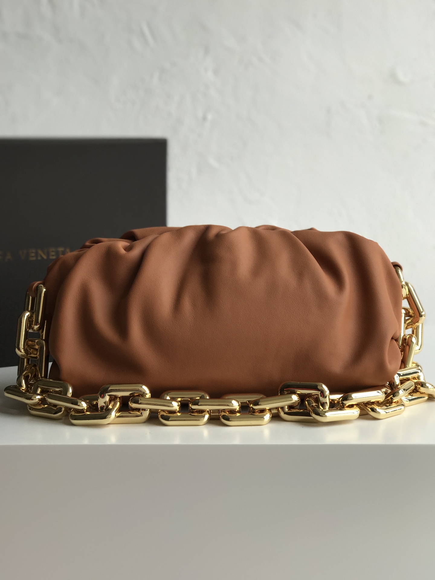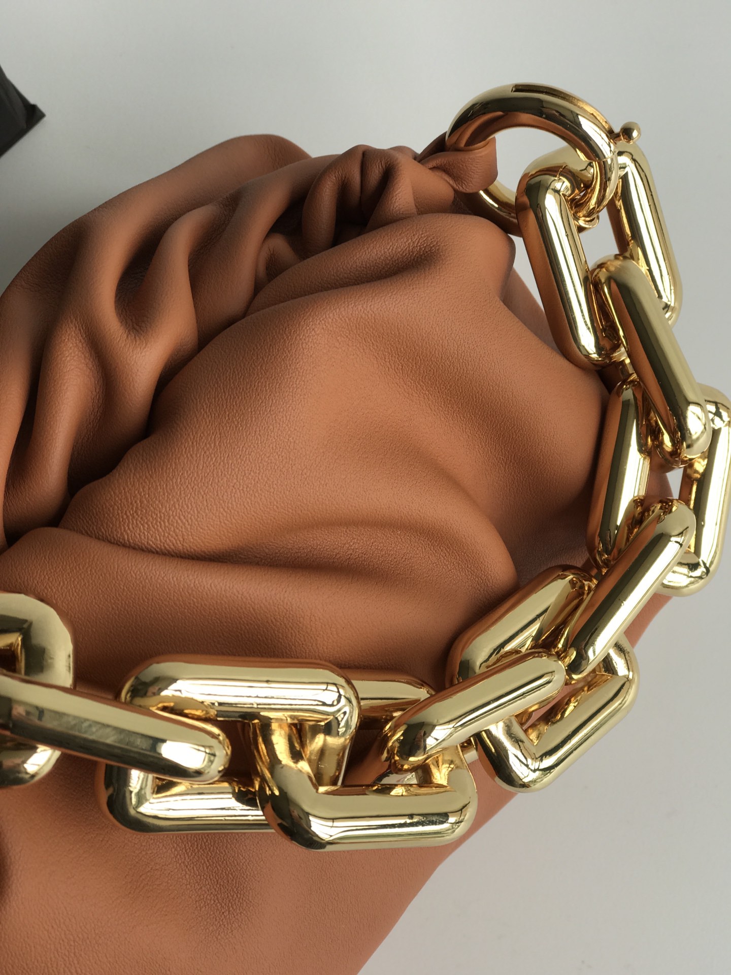 부드러운 패브릭으로 제작된 체인 파우치 클라우드 백은 고급스러운 브라운 색상으로, 어떤 스타일에도 잘 어울립니다.
