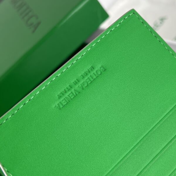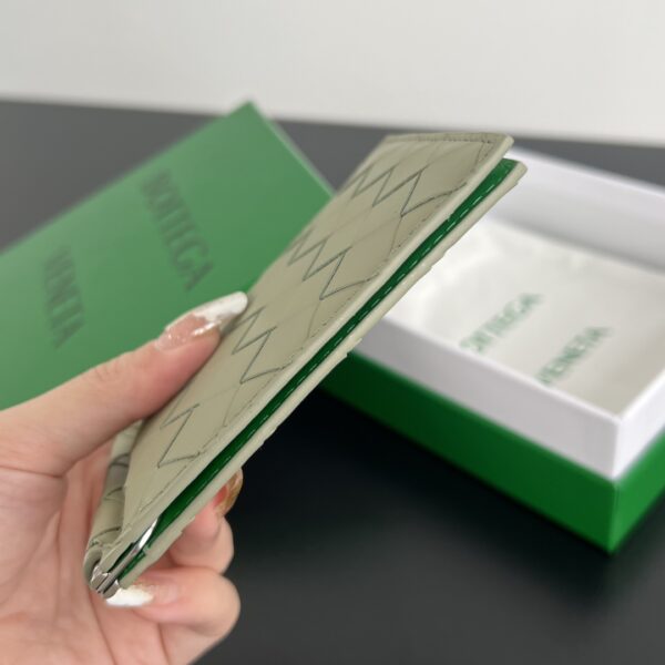 부드럽고 섬세한 질감의 편직 소가죽으로 제작된 카드 지갑입니다.