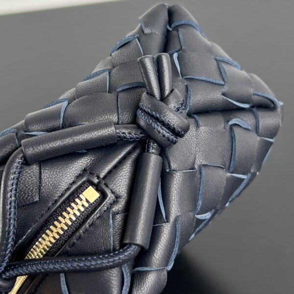부드러운 양가죽으로 제작되어 가벼우면서도 고급스러운 느낌을 줍니다. 정사각형의 형태와 정교한 엮음 디테일이 돋보이며, 단일 지퍼로 간편하게 여닫을 수 있습니다.