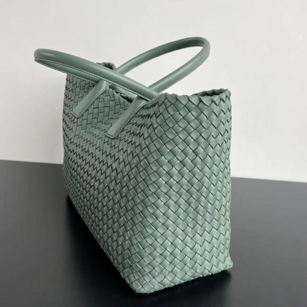 보테가의 카바트 대형 쇼핑백은 전통적인 편직 디자인으로, 부드러운 질감이 특징입니다.