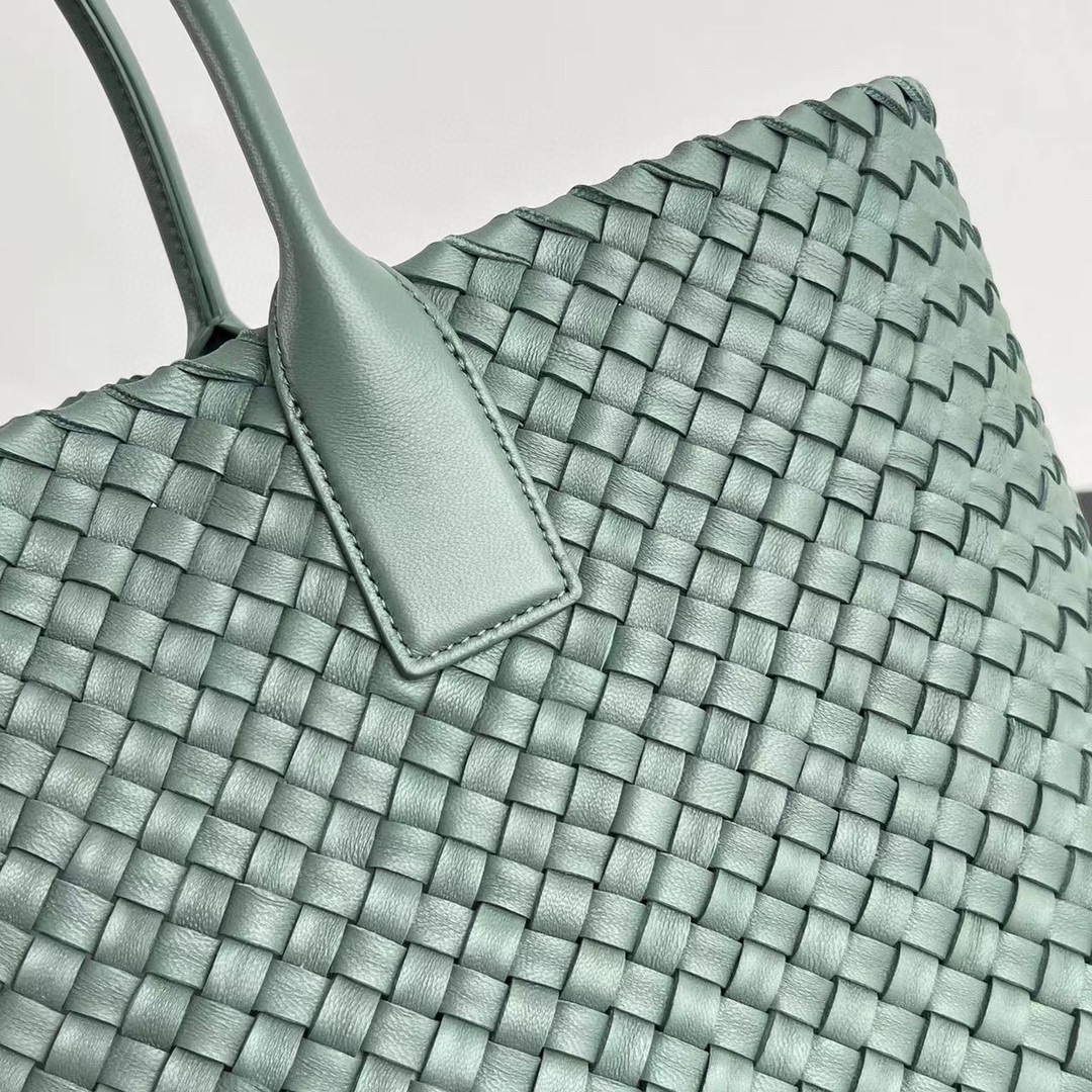 보테가의 카바트 대형 쇼핑백은 전통적인 편직 디자인으로, 부드러운 질감이 특징입니다.