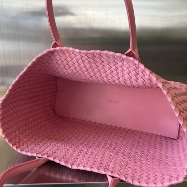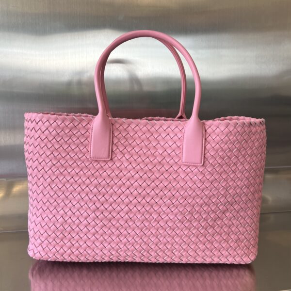 보테가의 카바트 대형 쇼핑백이 새롭게 출시되었습니다. 전통적인 편직 방식으로 제작된 이 가방은 부드러운 질감과 뛰어난 내구성을 자랑합니다.