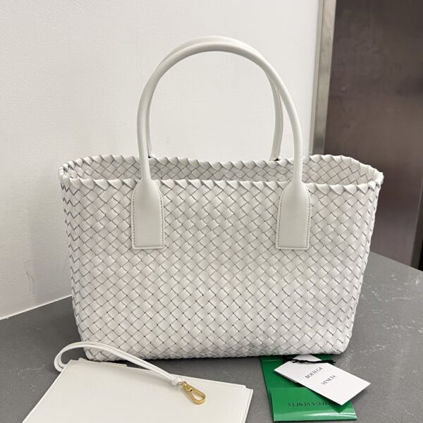 부드러운 질감의 카바트 미니 쇼핑백입니다. 전통적인 엮음 방식으로 제작되어 고급스러움을 더했습니다.