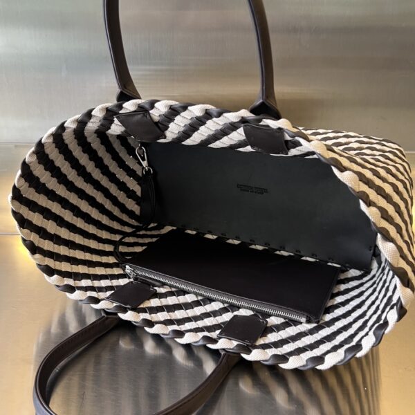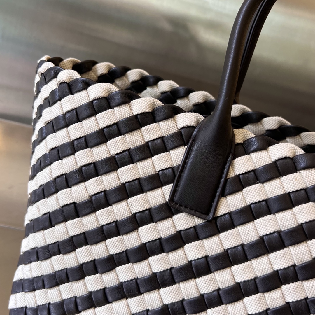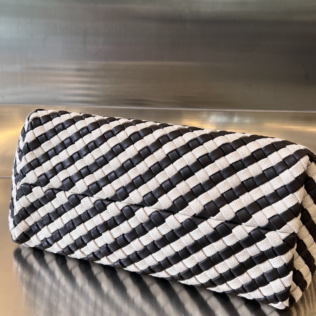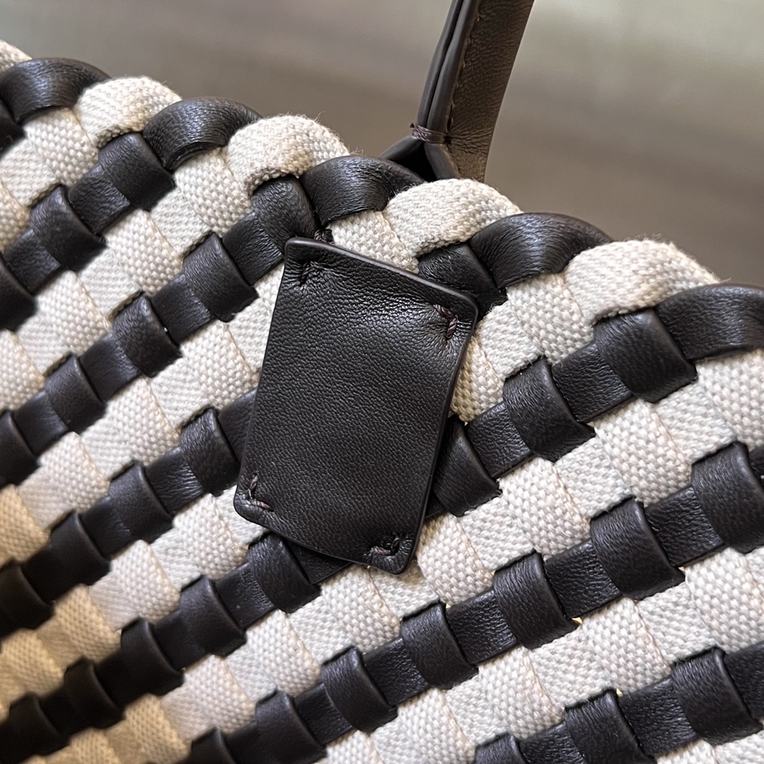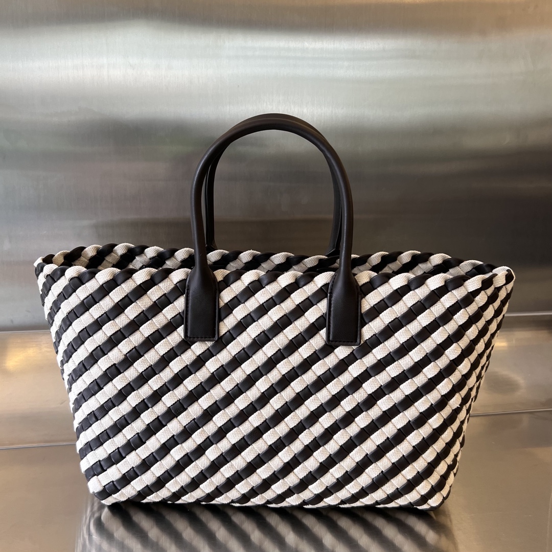 고급스러운 캔버스와 양가죽이 조화를 이루는 보테가 카바트 핸드백입니다.