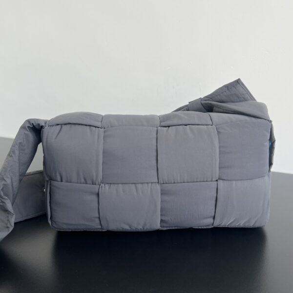 넓은 폭의 교차 편직 디자인이 돋보이며, 부풀어 오른 형태가 마치 부드러운 두부처럼 느껴집니다. 단독으로 착용하거나, 어깨에 걸치거나, 크로스백으로 활용할 수 있어 다양한 스타일링이 가능합니다.