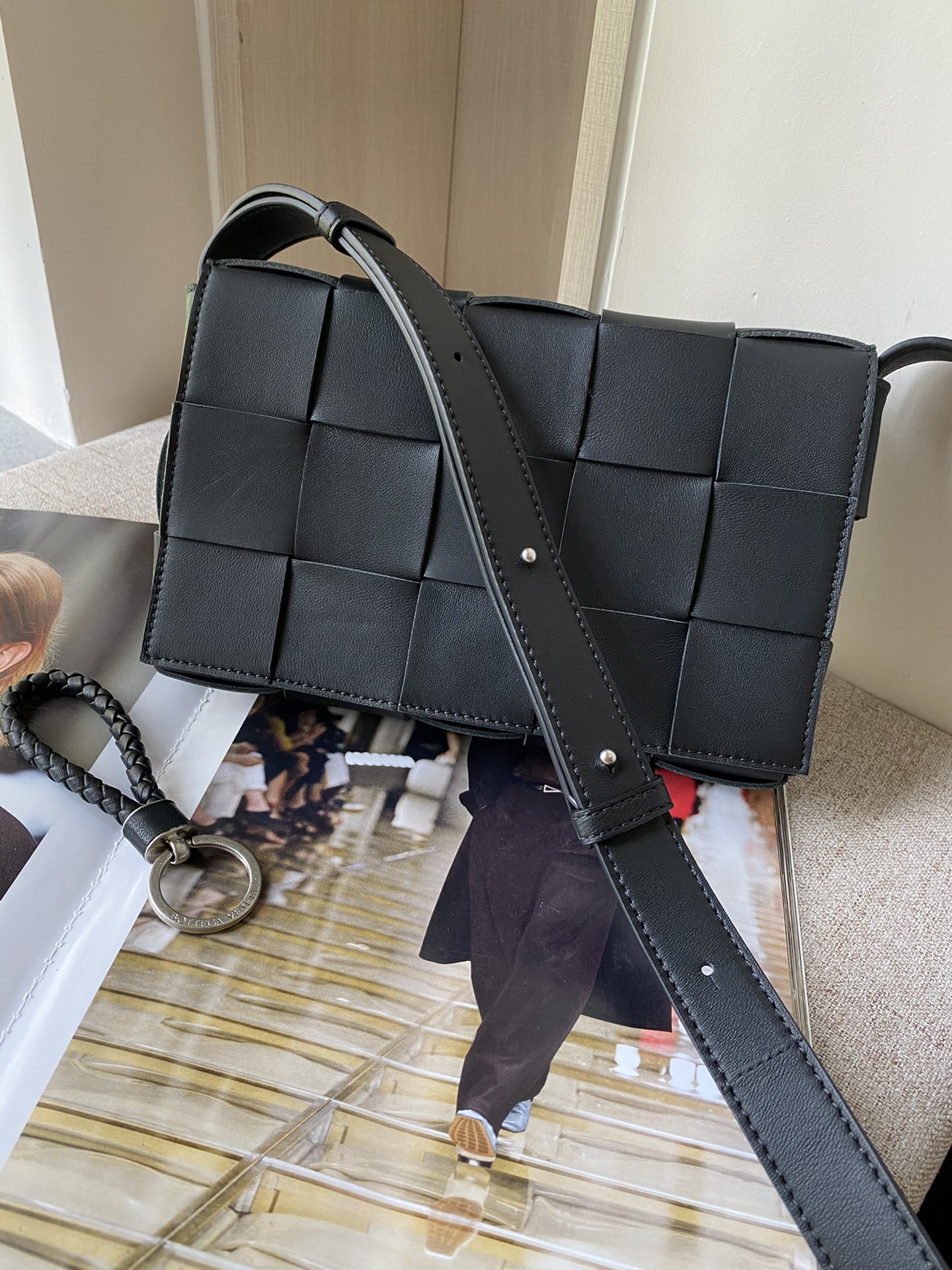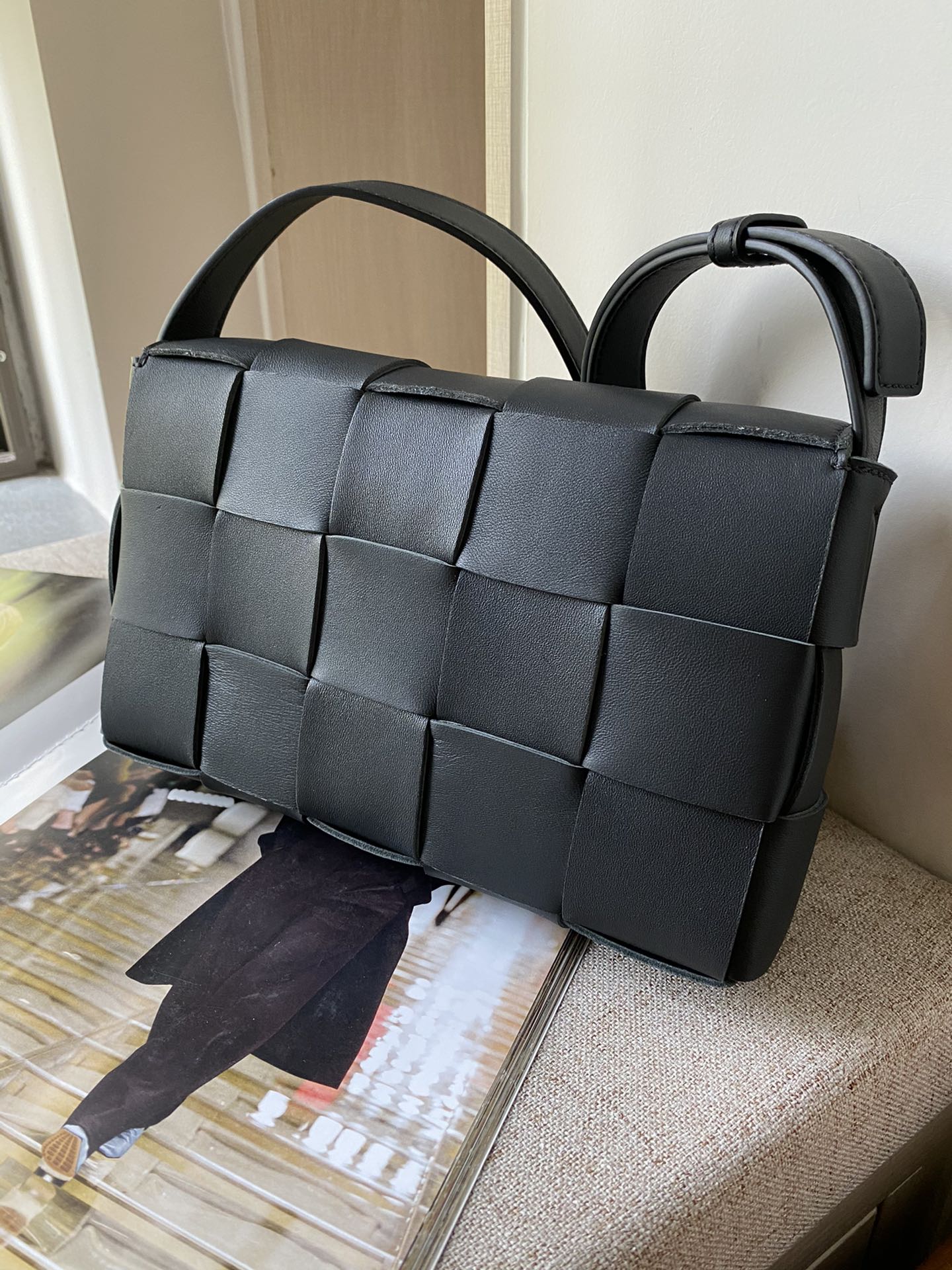부드러운 양가죽 소재로 제작된 카세트 매트릭스 백입니다.