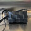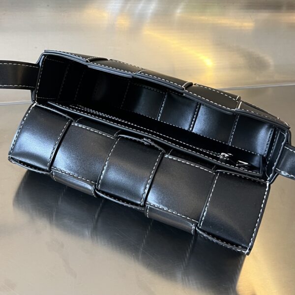 보테가의 카세트 미니백은 클래식한 편직 디자인과 화이트 스티치가 조화를 이루어 동적인 공예미와 재미있는 스타일을 선사합니다.