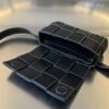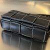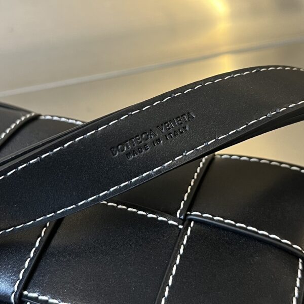 보테가의 카세트 미니백은 클래식한 편직 디자인과 화이트 스티치가 조화를 이루어 동적인 공예미와 재미있는 스타일을 자아냅니다.