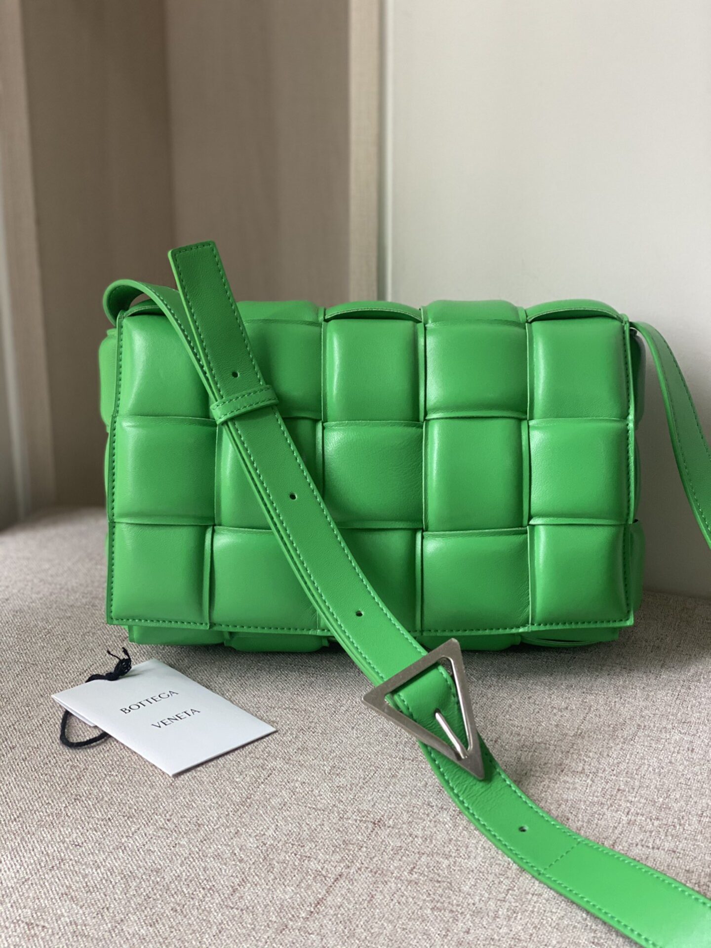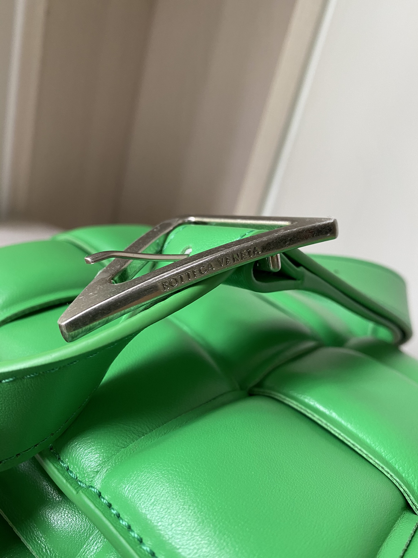 부드러운 가죽 소재로 제작된 카세트 백입니다.