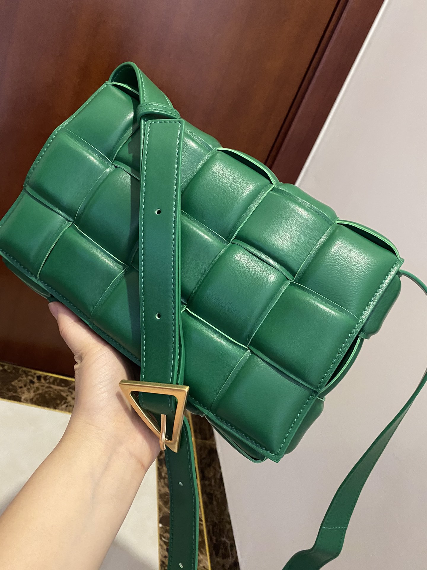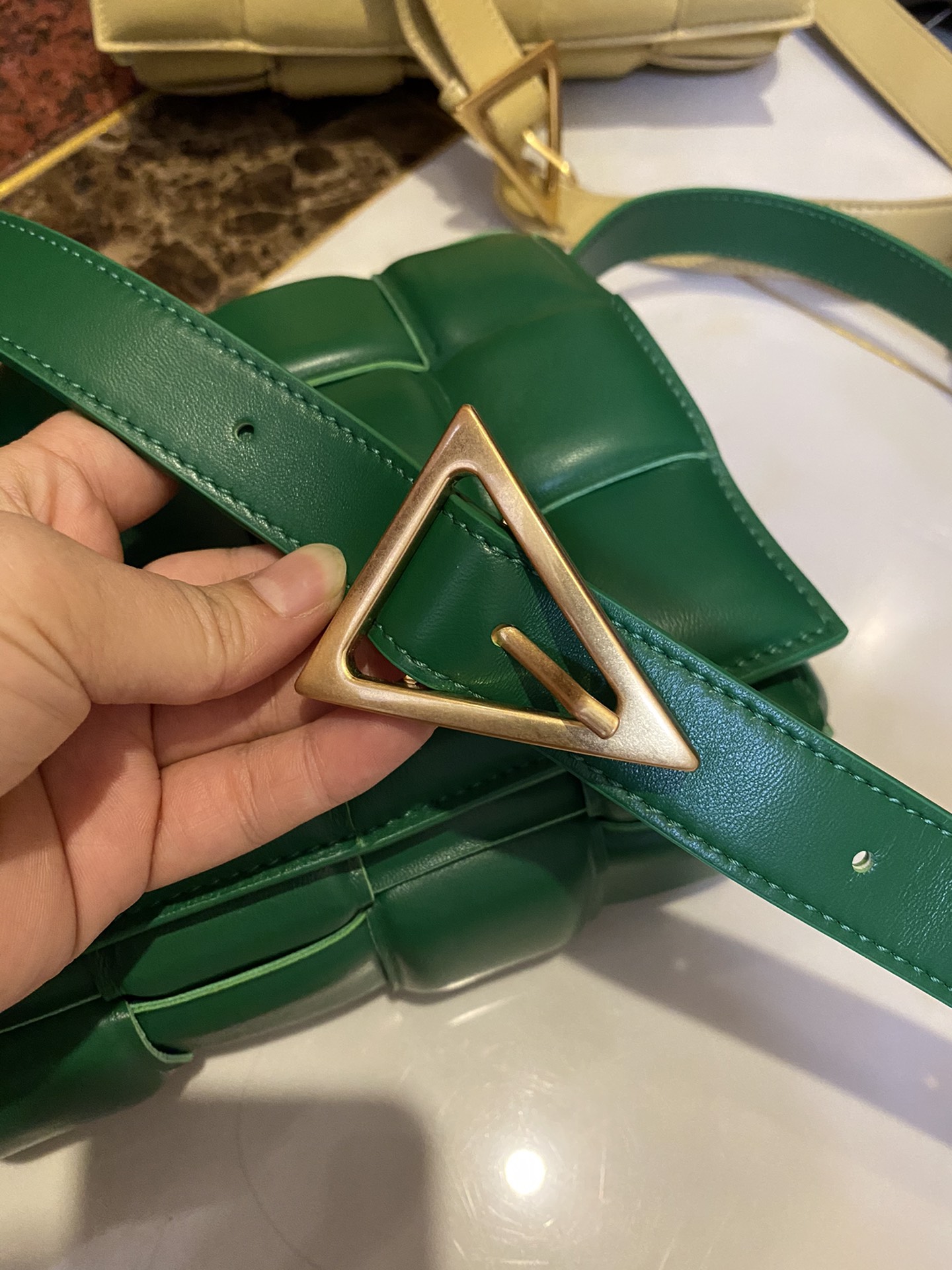 부드러운 양가죽 소재로 제작된 카세트 백입니다.