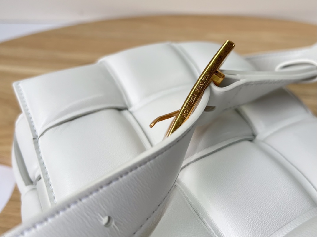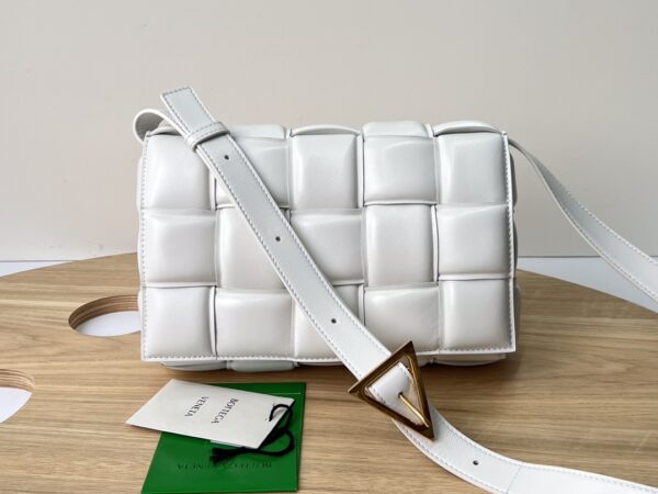 부드러운 가죽 소재로 제작된 카세트 백은 귀여운 디자인과 고급스러운 질감을 자랑합니다.