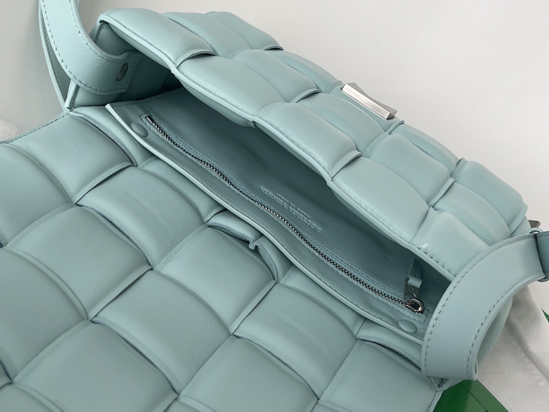 부드러운 질감의 고급 가죽으로 제작된 카세트 백입니다.