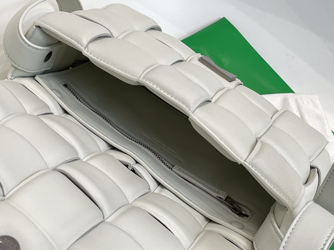 부드러운 질감의 고급 가죽으로 제작된 카세트 백입니다.