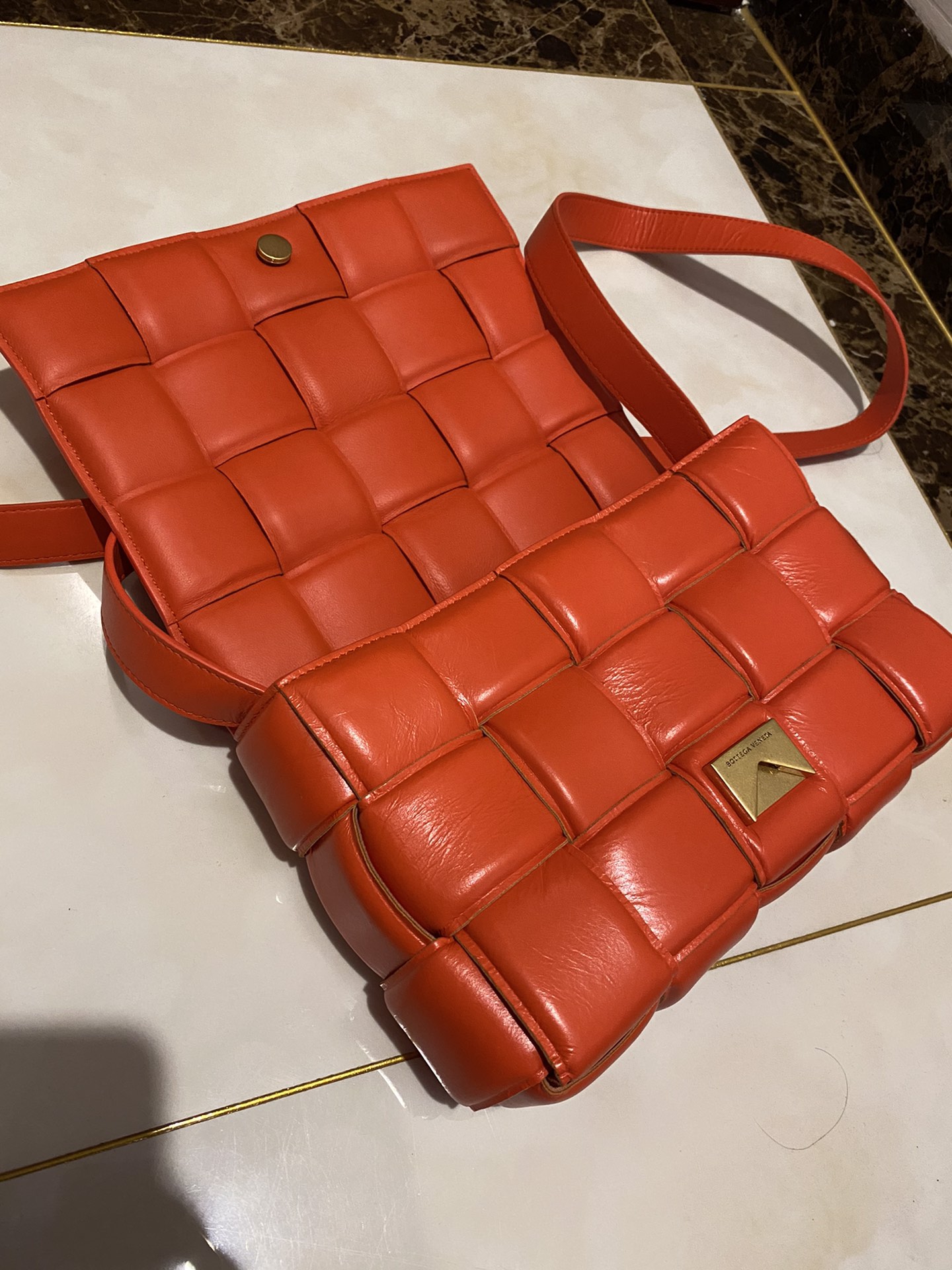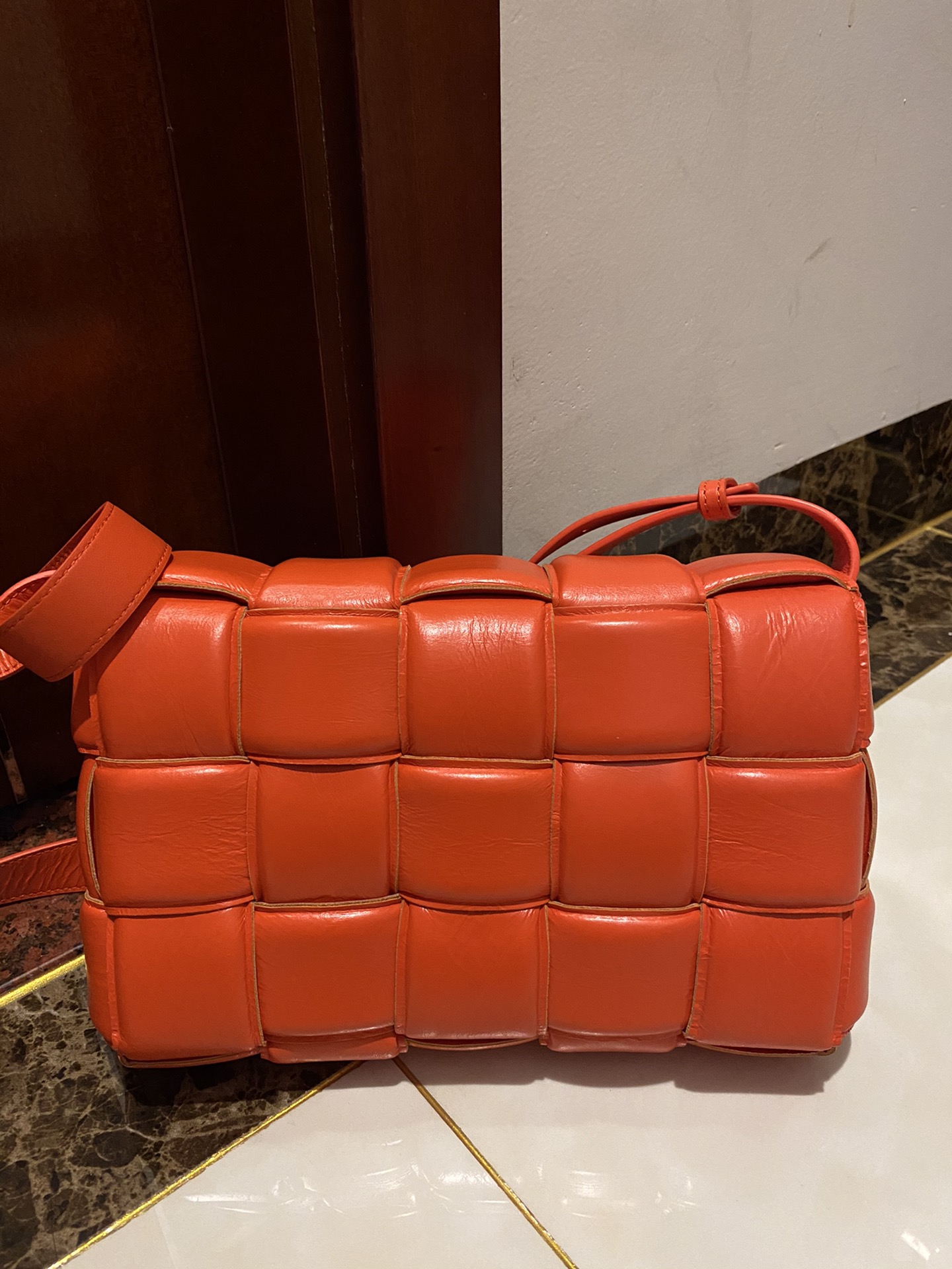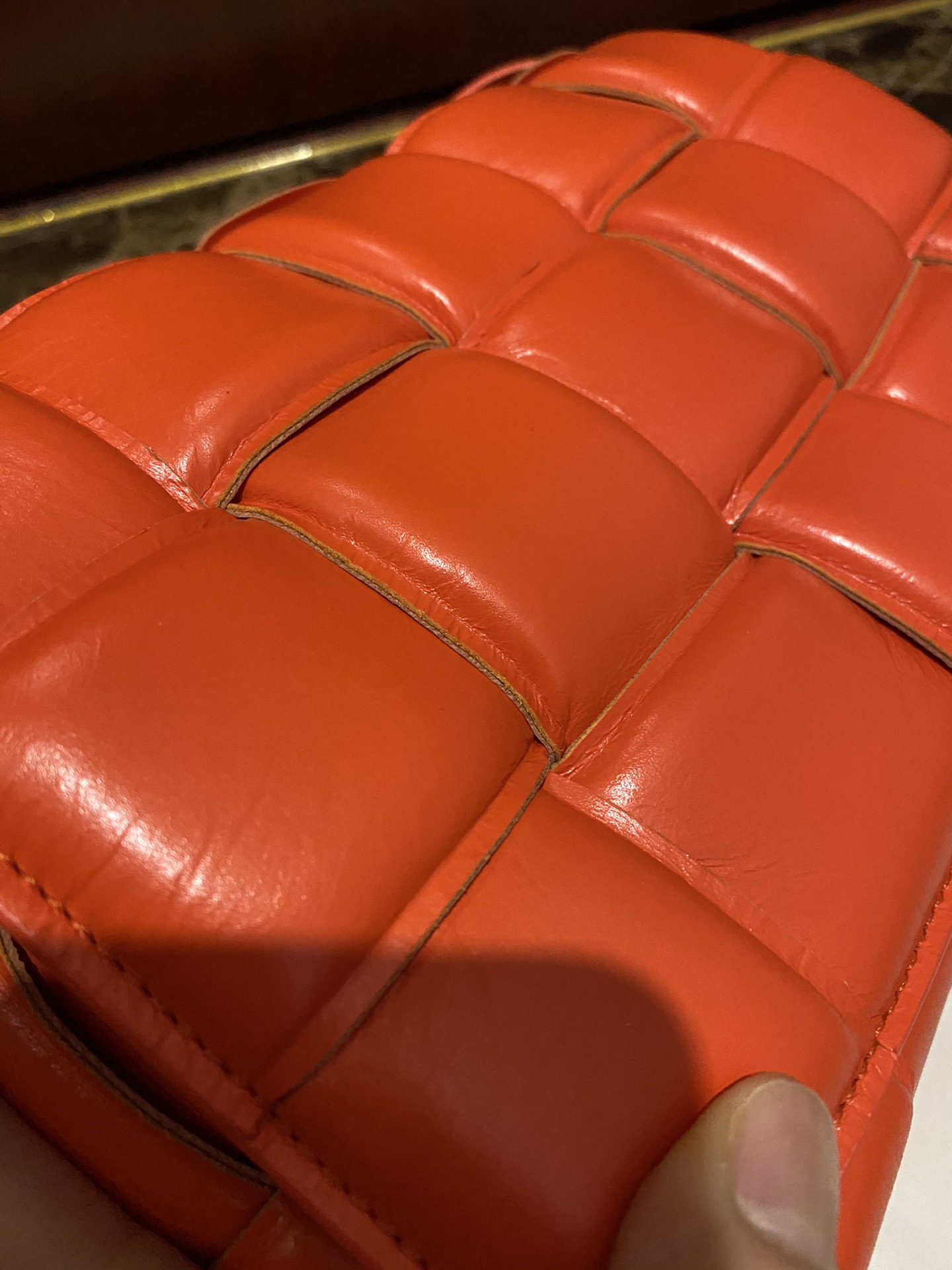 부드러운 가죽 소재로 제작된 카세트 백입니다.