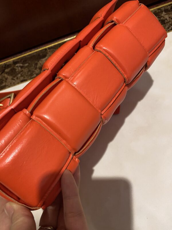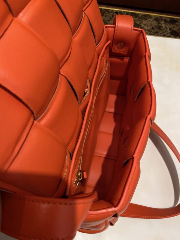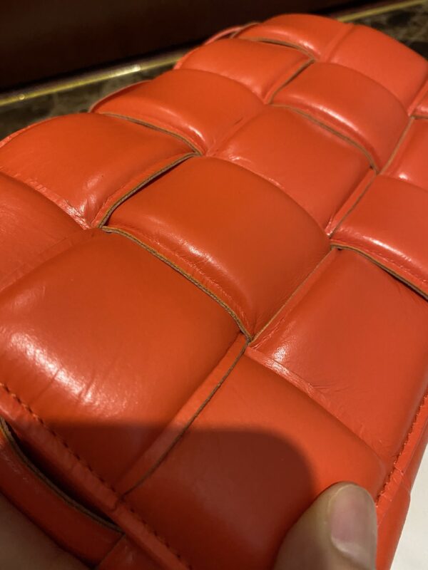 부드러운 질감의 고급 가죽으로 제작된 카세트 백입니다.