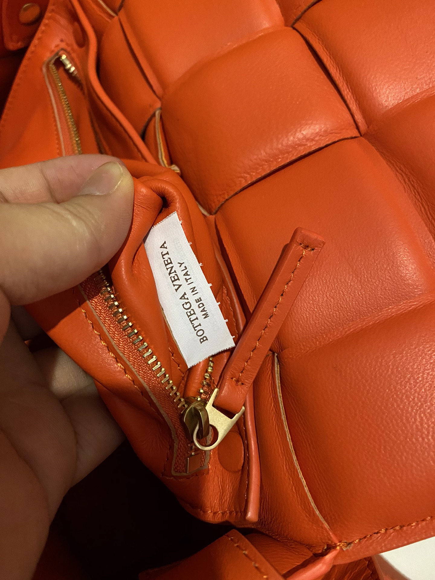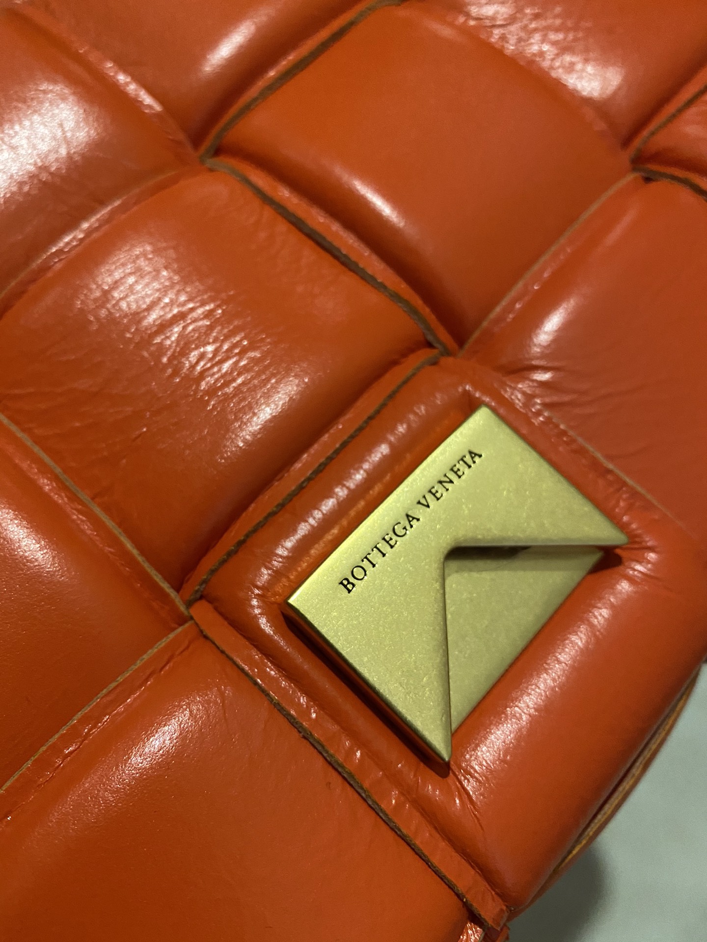 부드러운 질감의 고급 가죽으로 제작된 카세트 백입니다.