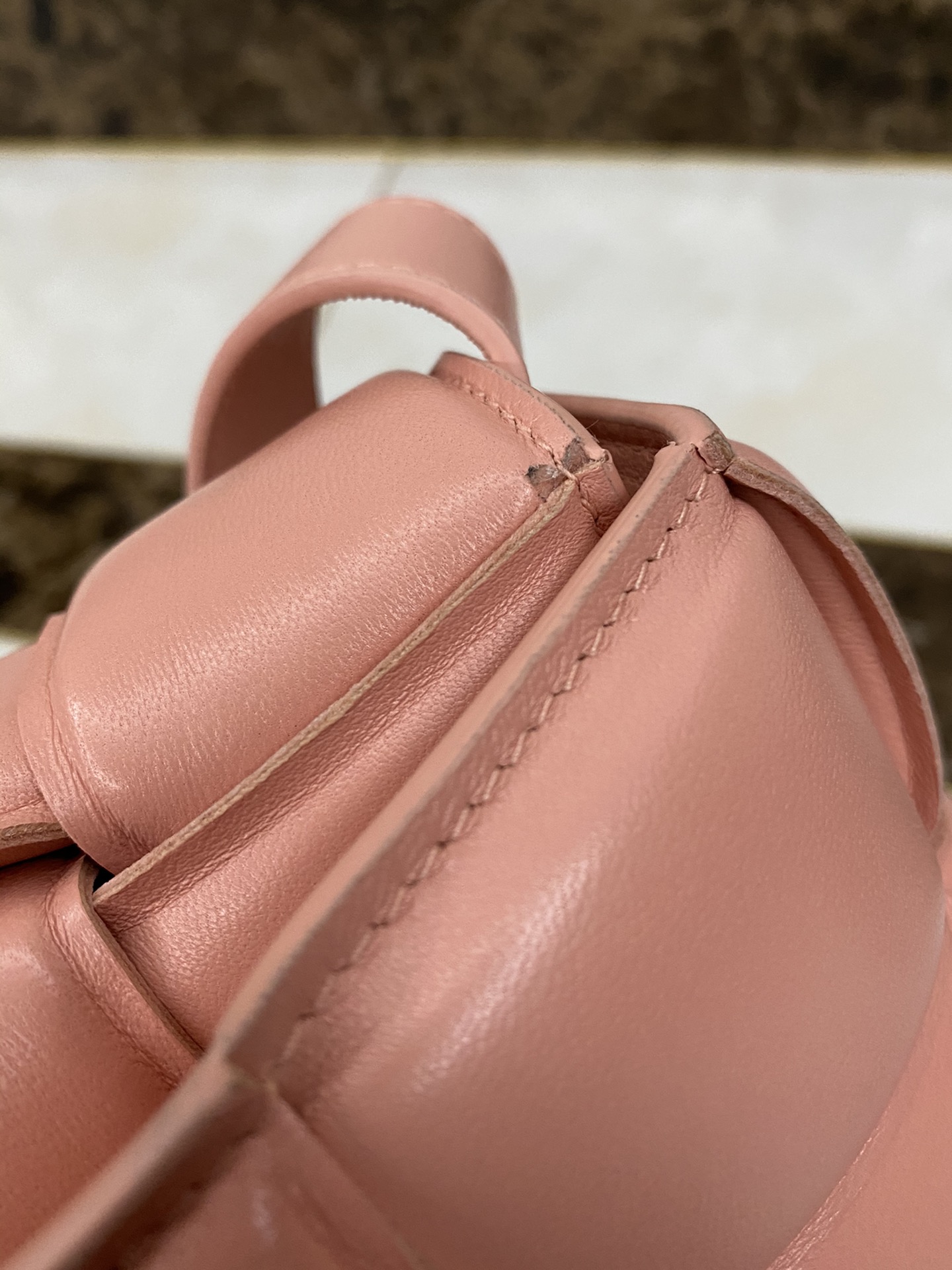 부드러운 소가죽 소재로 제작된 카세트 백입니다.