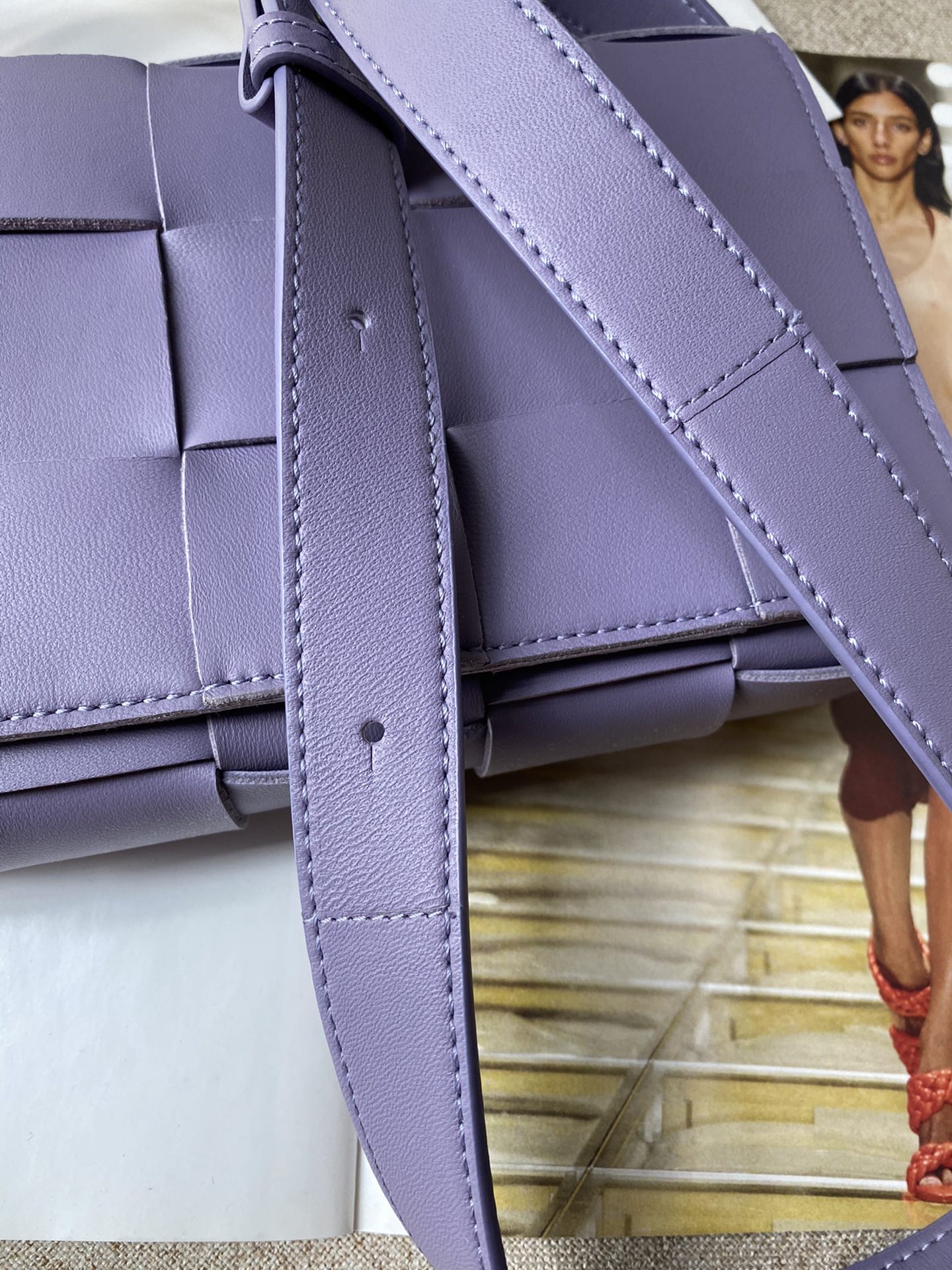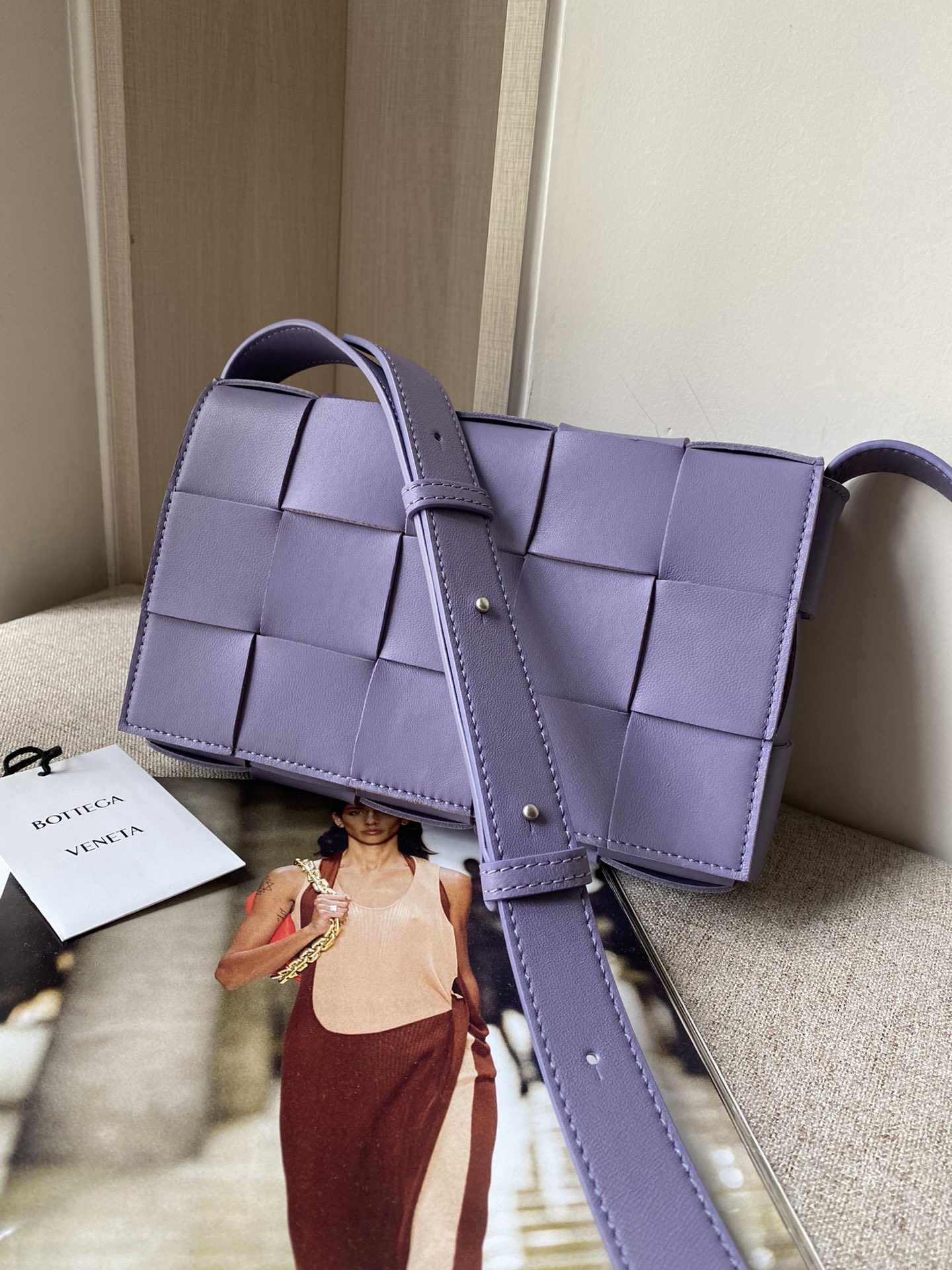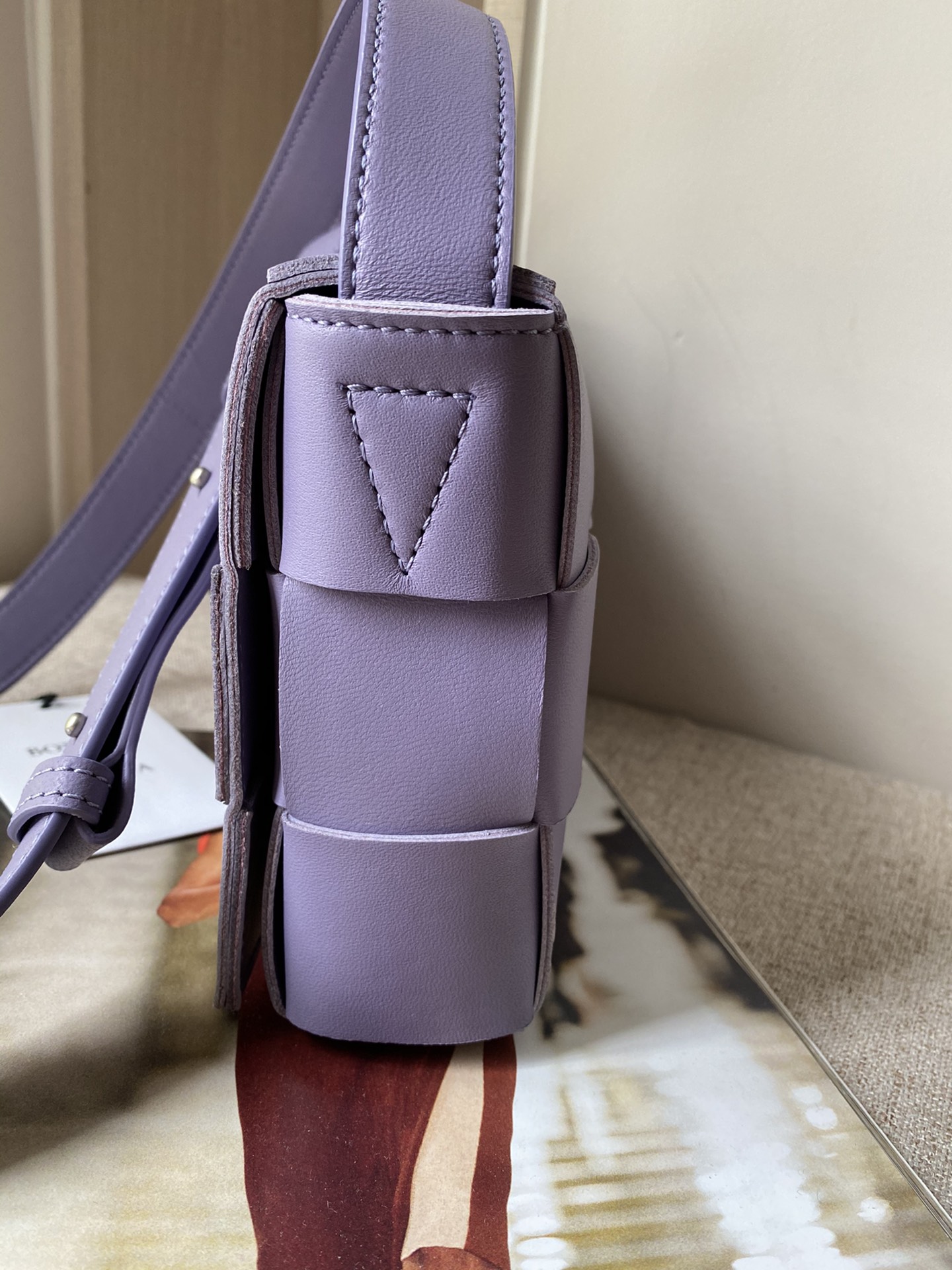 부드러운 양가죽 소재로 제작된 카세트 웨이브 백입니다.