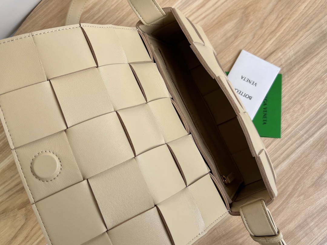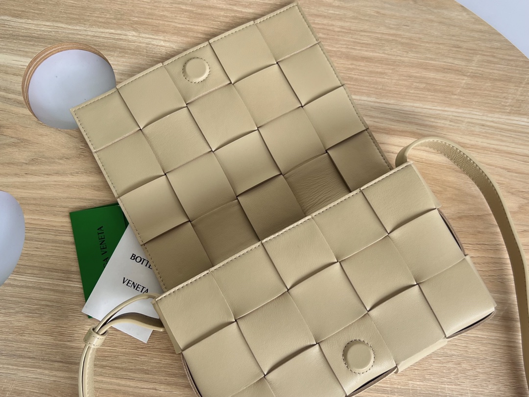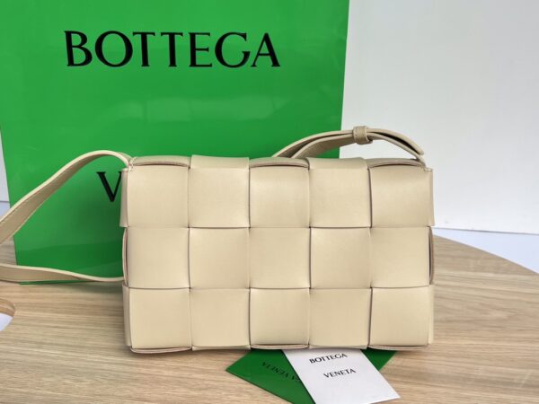 부드러운 양가죽 소재로 제작된 카세트 위빙 백입니다.