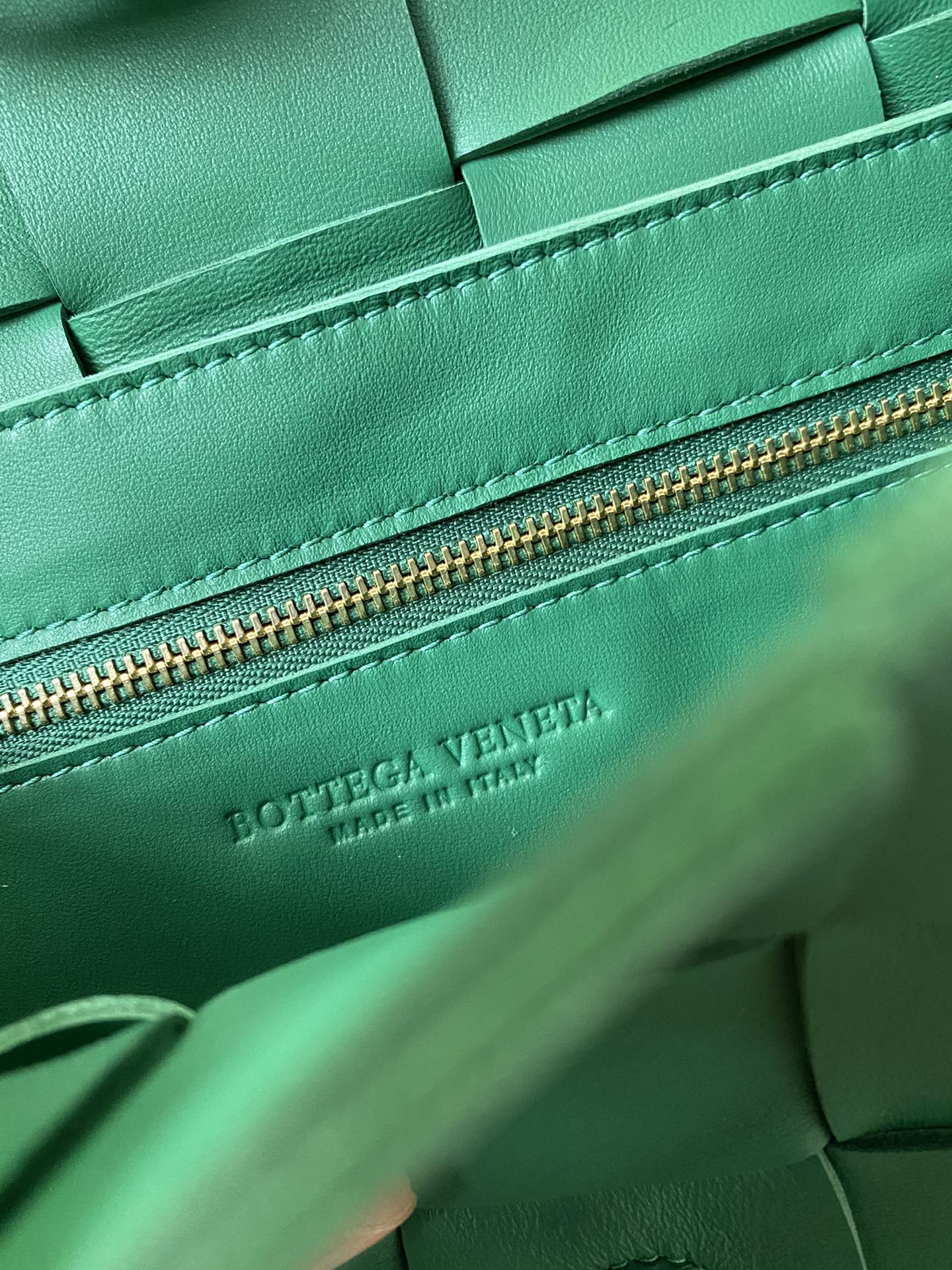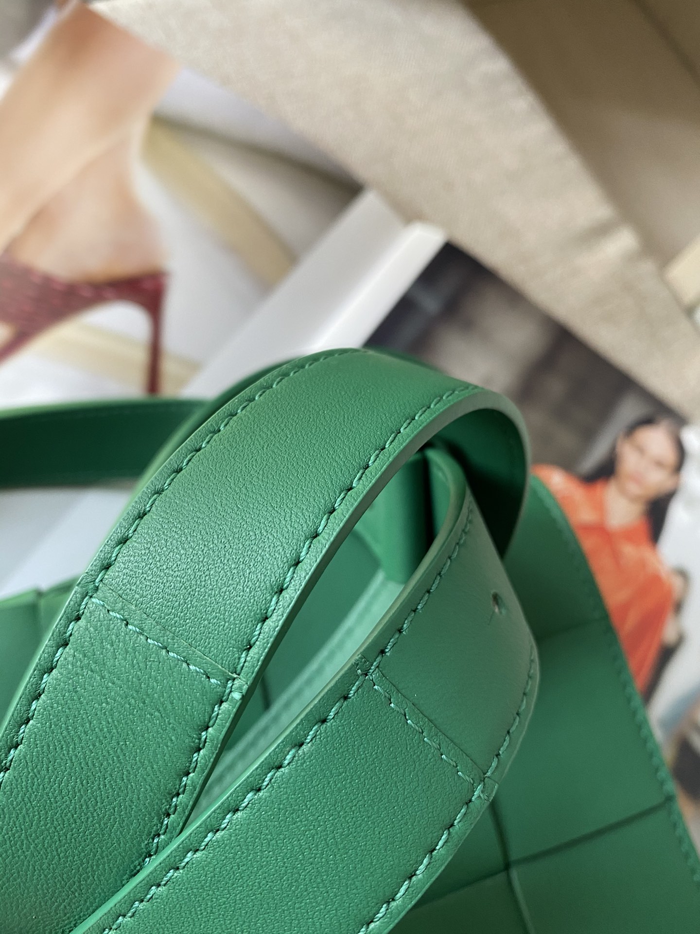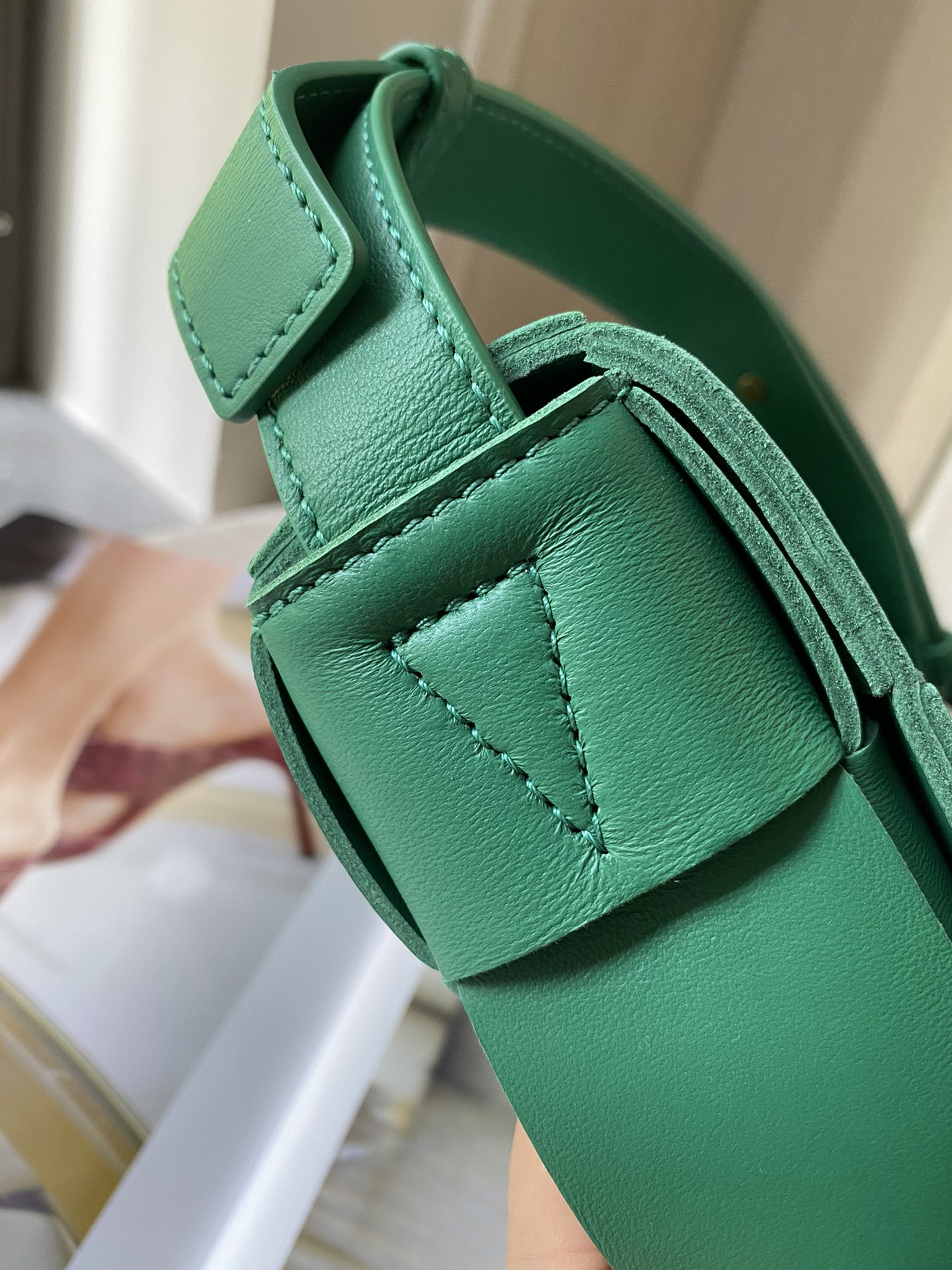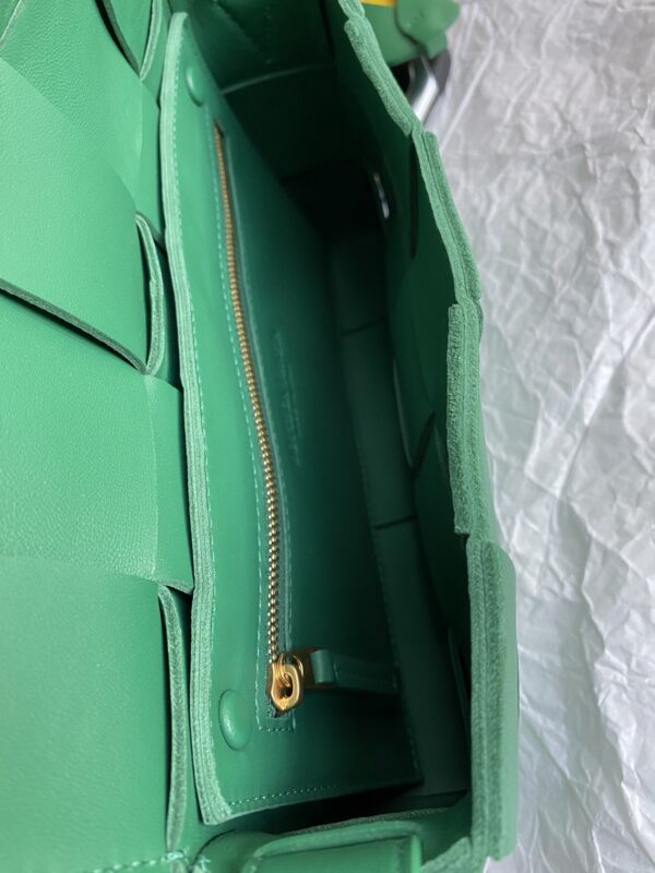 부드러운 양가죽 소재로 제작된 카세트 위빙 파우치는 고급스러운 느낌을 줍니다.