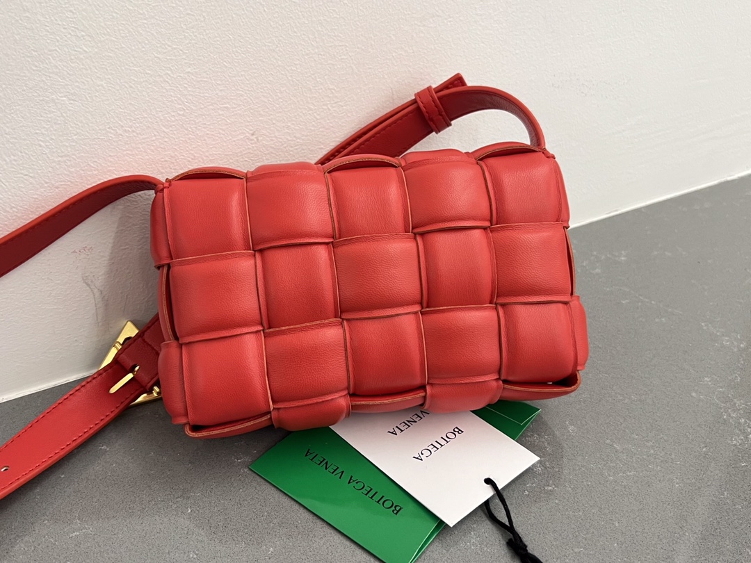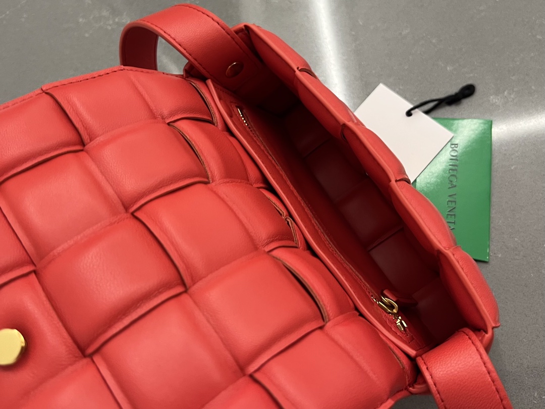 부드러운 질감의 캐비어 가죽으로 제작된 카세트 중형 쿠션백입니다.