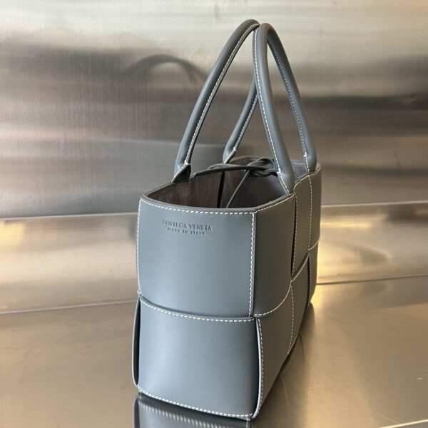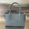 보테가의 카세트 토트백은 클래식한 대편格 디자인과 화이트 스티치가 조화를 이루어 동적인 공예미와 재미있는 스타일을 강조합니다.