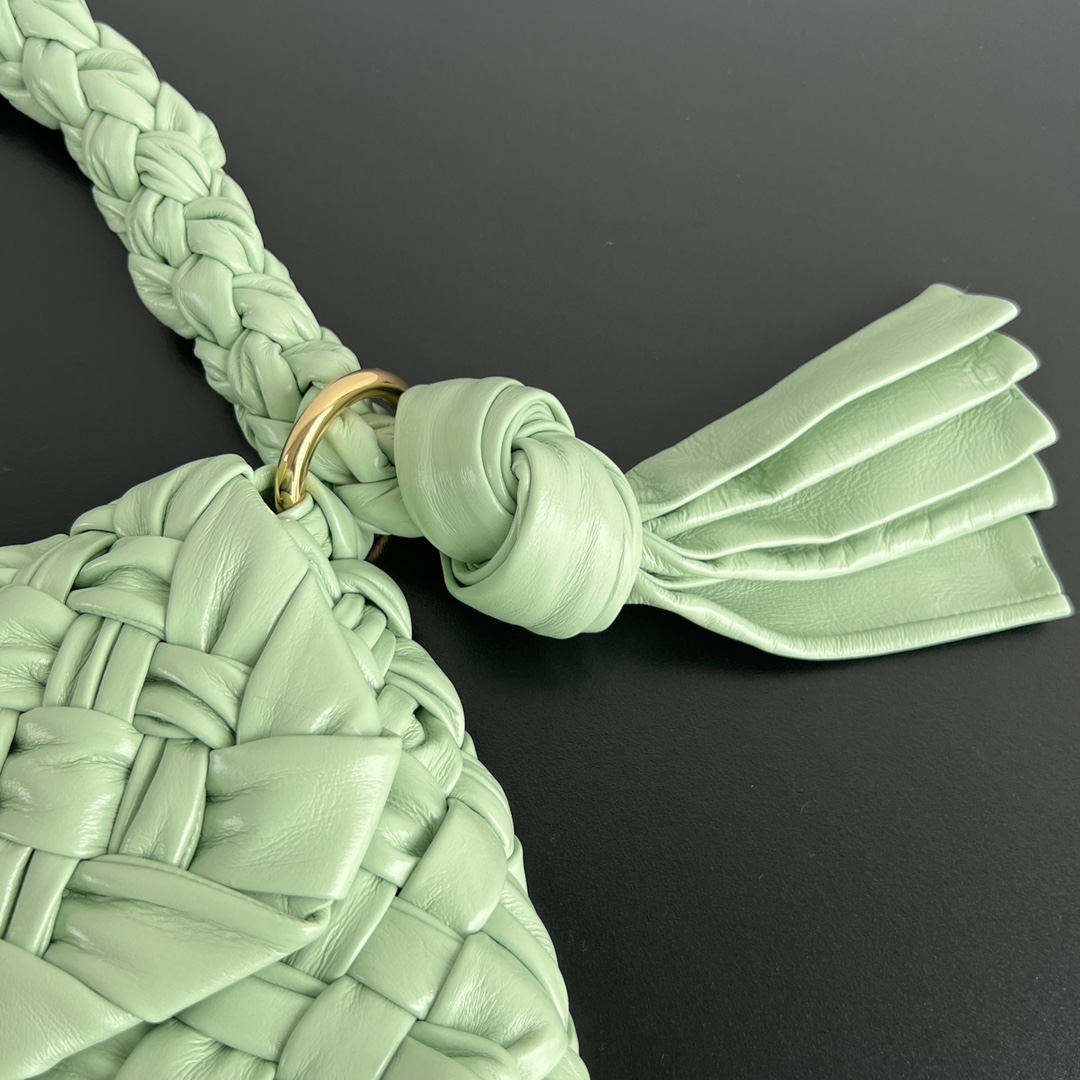 3cm 폭의 가죽 스트랩으로 수작업으로 엮어낸 이 가방은 견고한 형태를 유지하며, 내부는 지퍼로 마감되어 있어 실용성을 더했습니다.