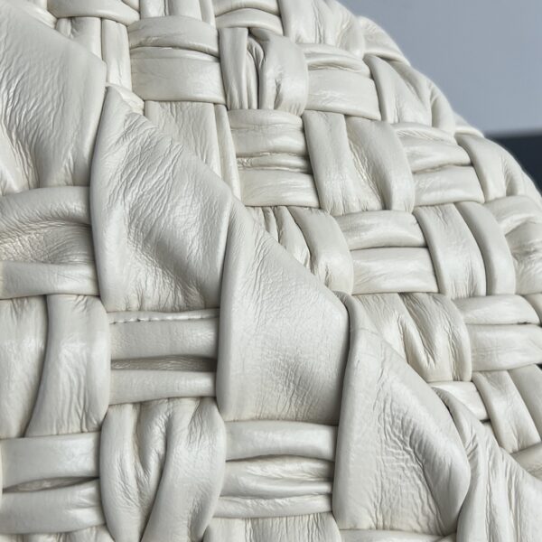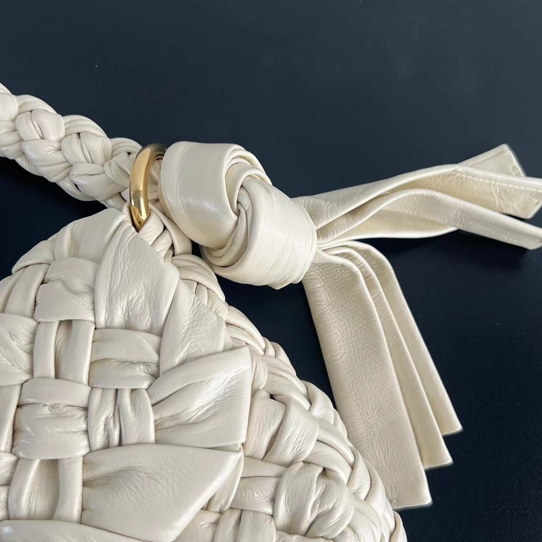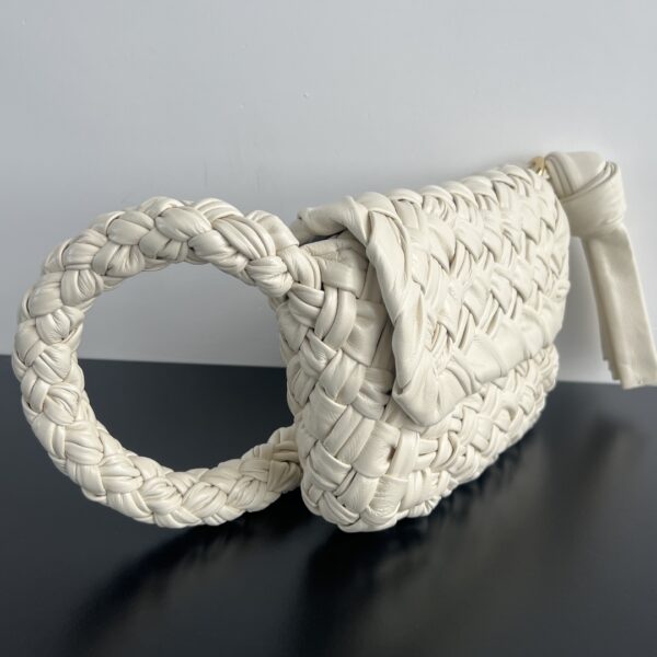 3cm 폭의 가죽 스트랩으로 수작업으로 엮어낸 이 가방은 견고한 형태를 유지하며, 내부에는 지퍼가 있어 실용성을 더했습니다.
