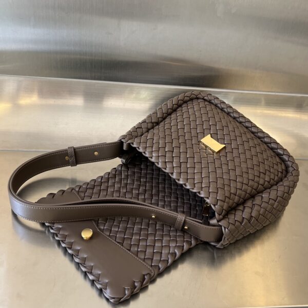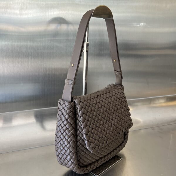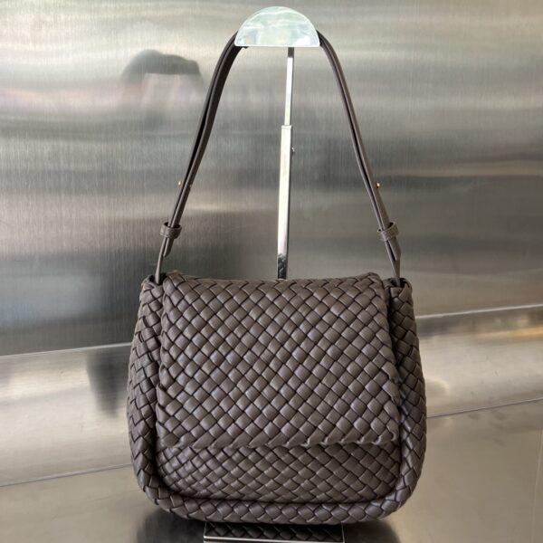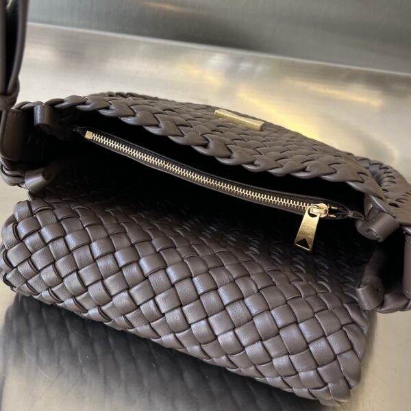 부드러운 양가죽과 보테가의 상징적인 인트레치아토(직조) 가죽으로 제작된 코블 숄더백입니다.
