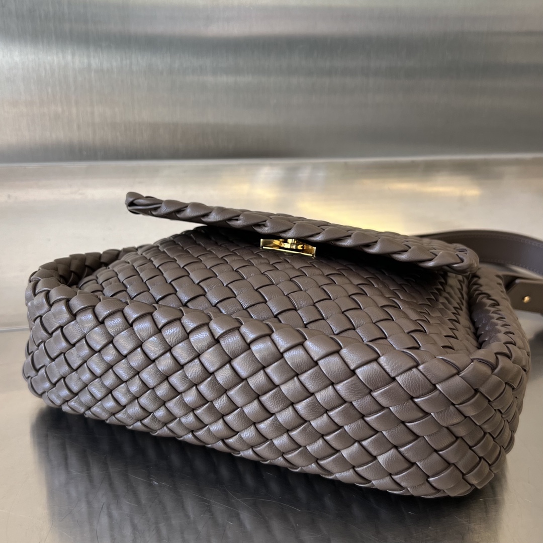 부드러운 양가죽과 보테가의 상징적인 인트레치아토(직조) 가죽으로 제작된 코블 숄더백입니다.