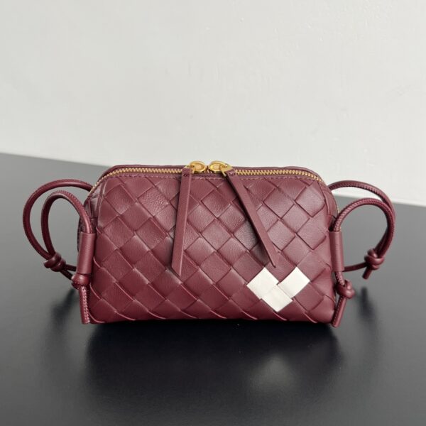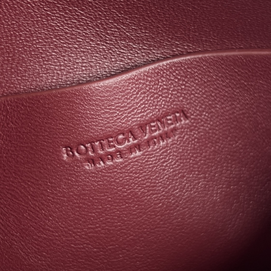 보테가의 콘서트 파우치는 사랑스러운 레드 컬러와 인트레치아토 패턴으로 시선을 사로잡습니다.