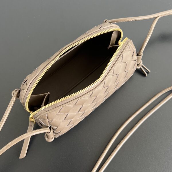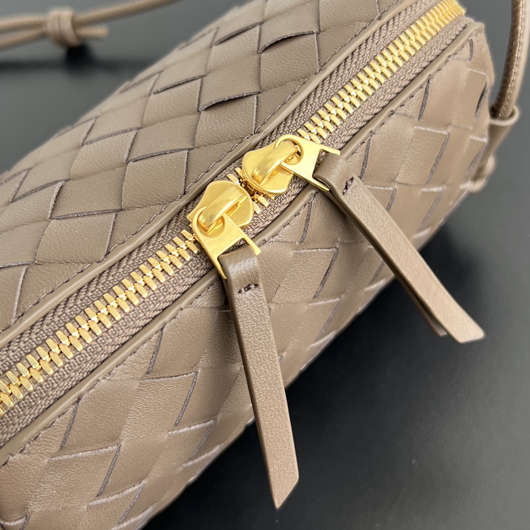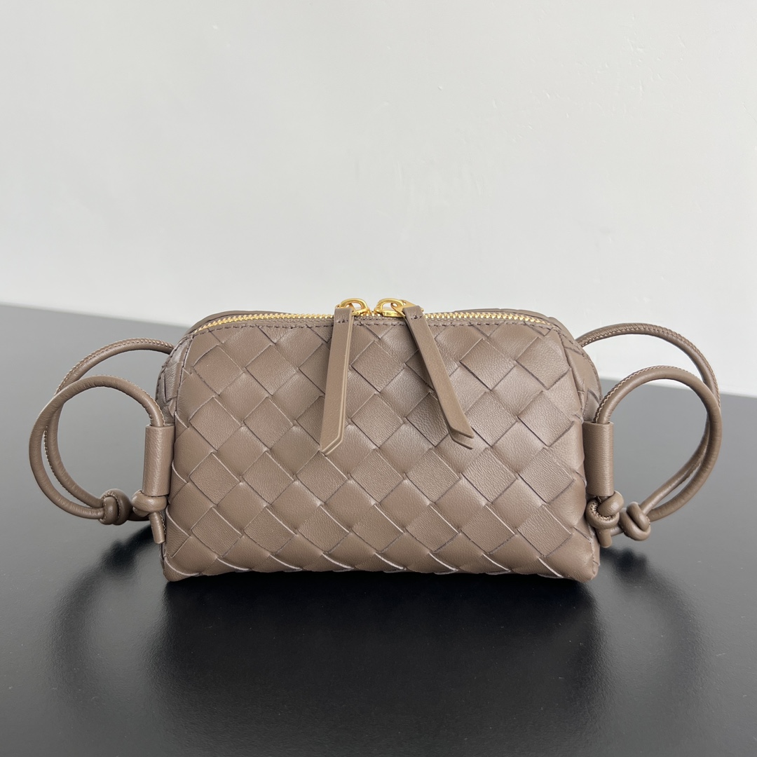 보테가의 콘서트 파우치는 클래식한 인트레치아토(직조) 디자인으로 세련된 매력을 더합니다.