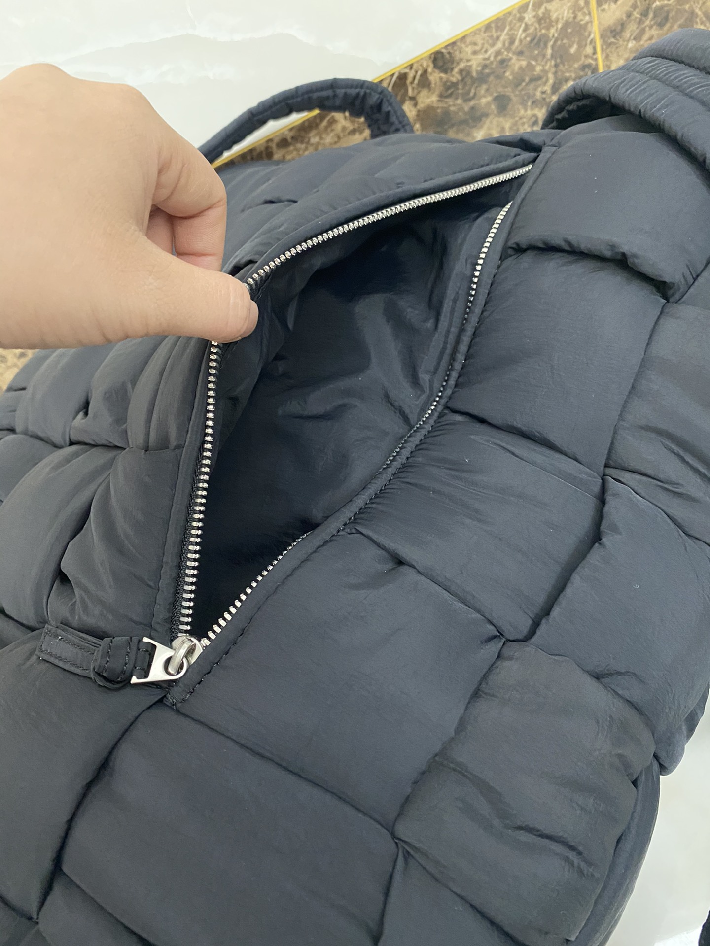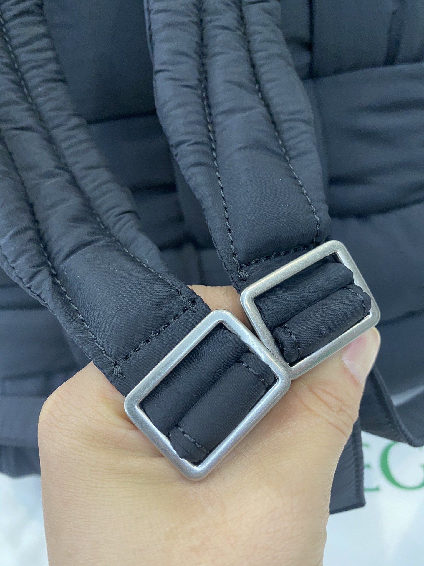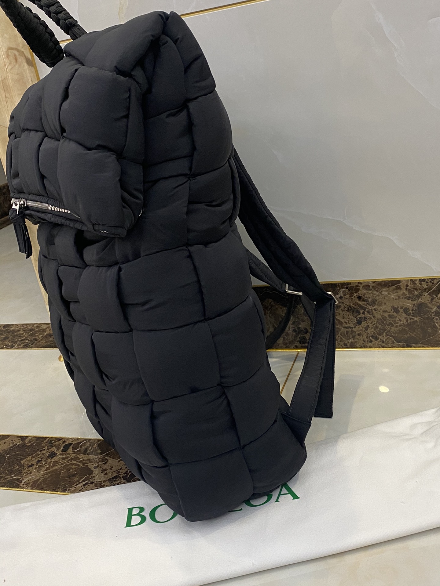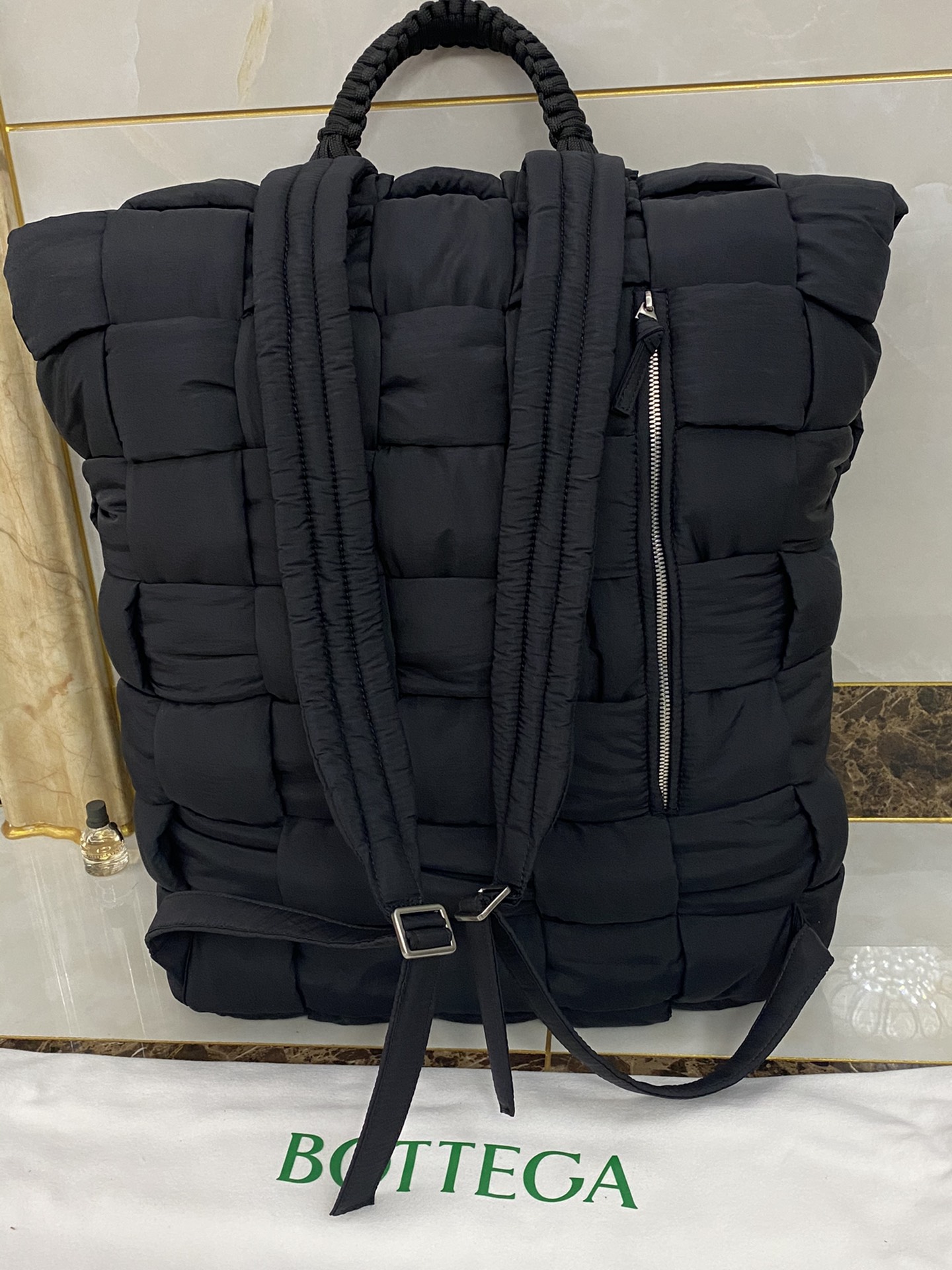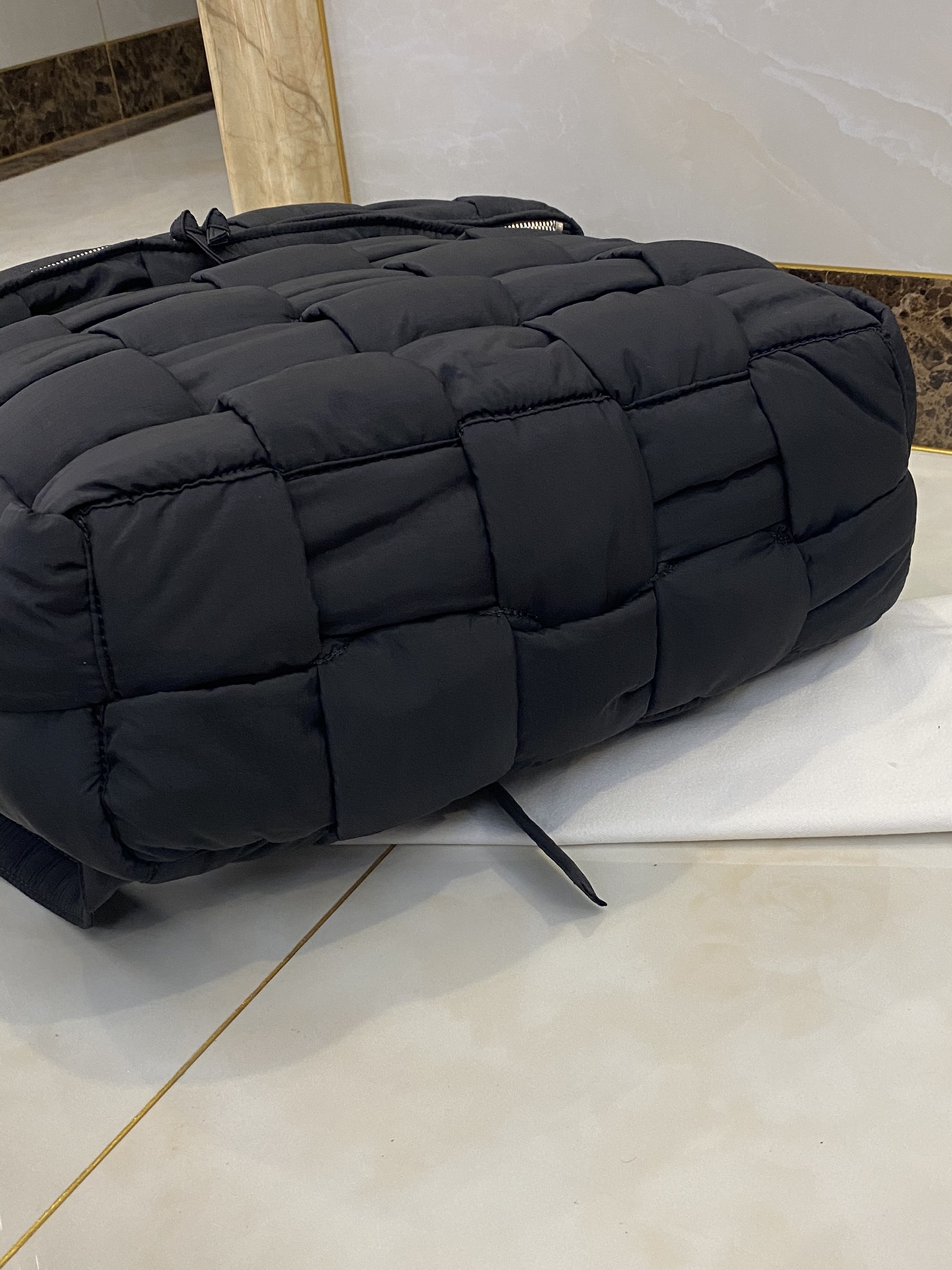 퀼팅 디자인의 백팩으로, 유니크한 매력을 지니고 있습니다.