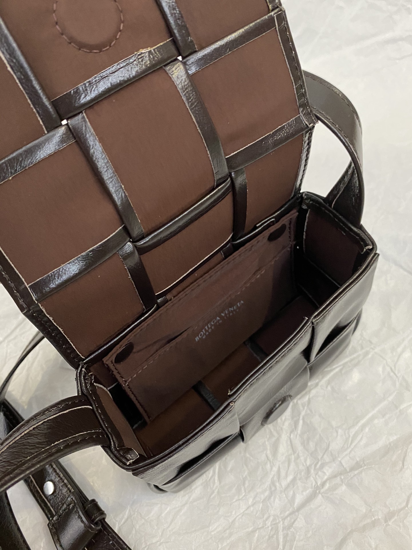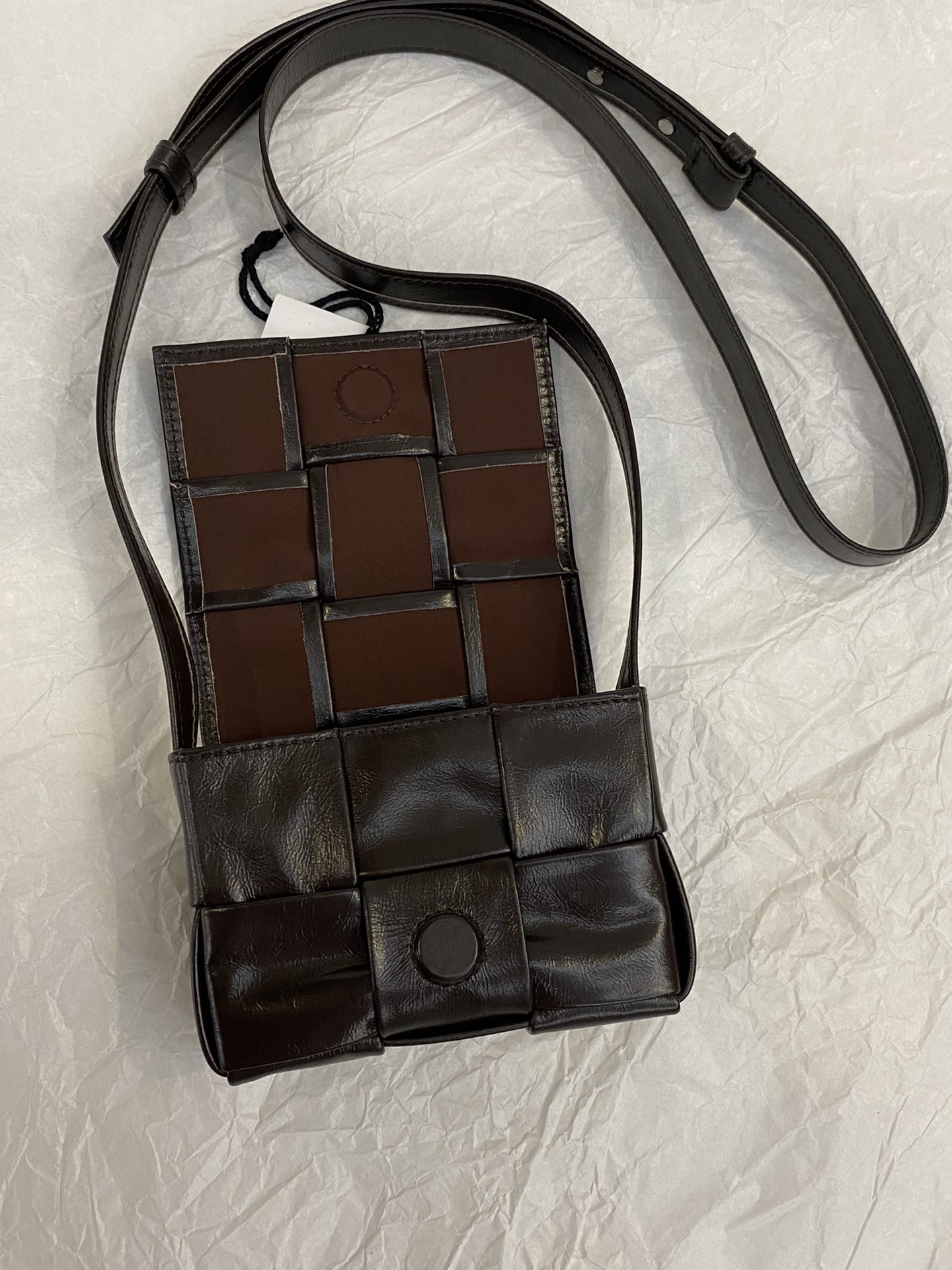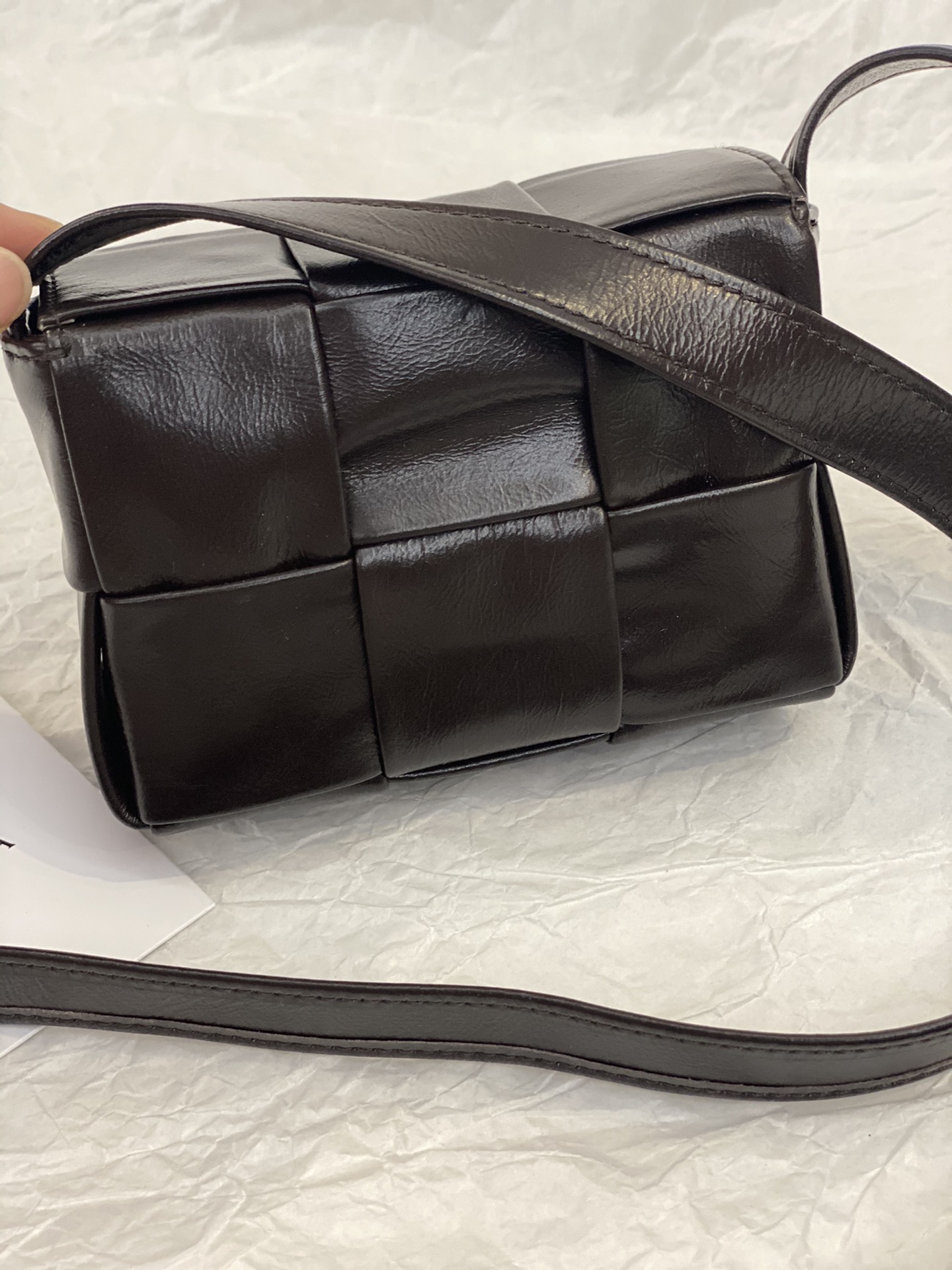 부드러운 가죽 소재로 제작된 크로스백입니다.