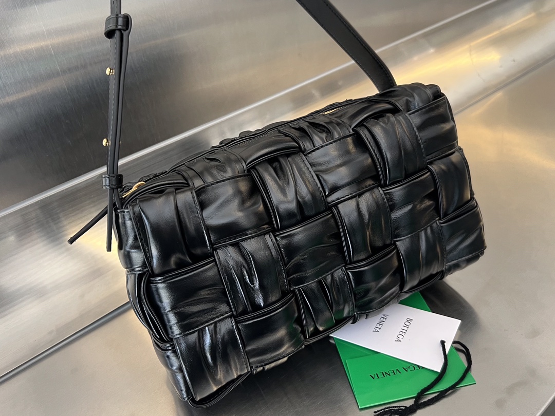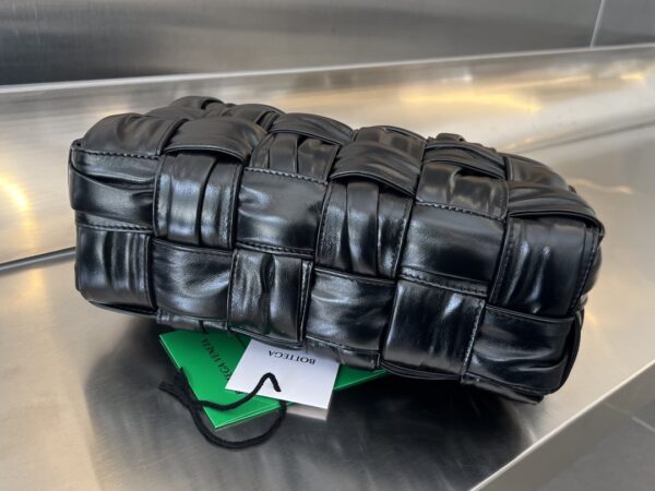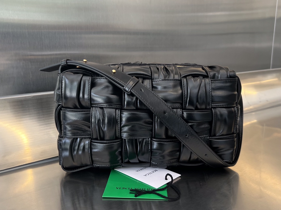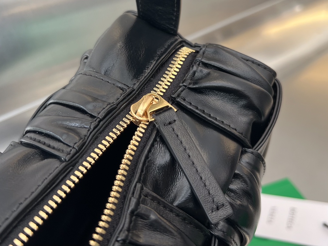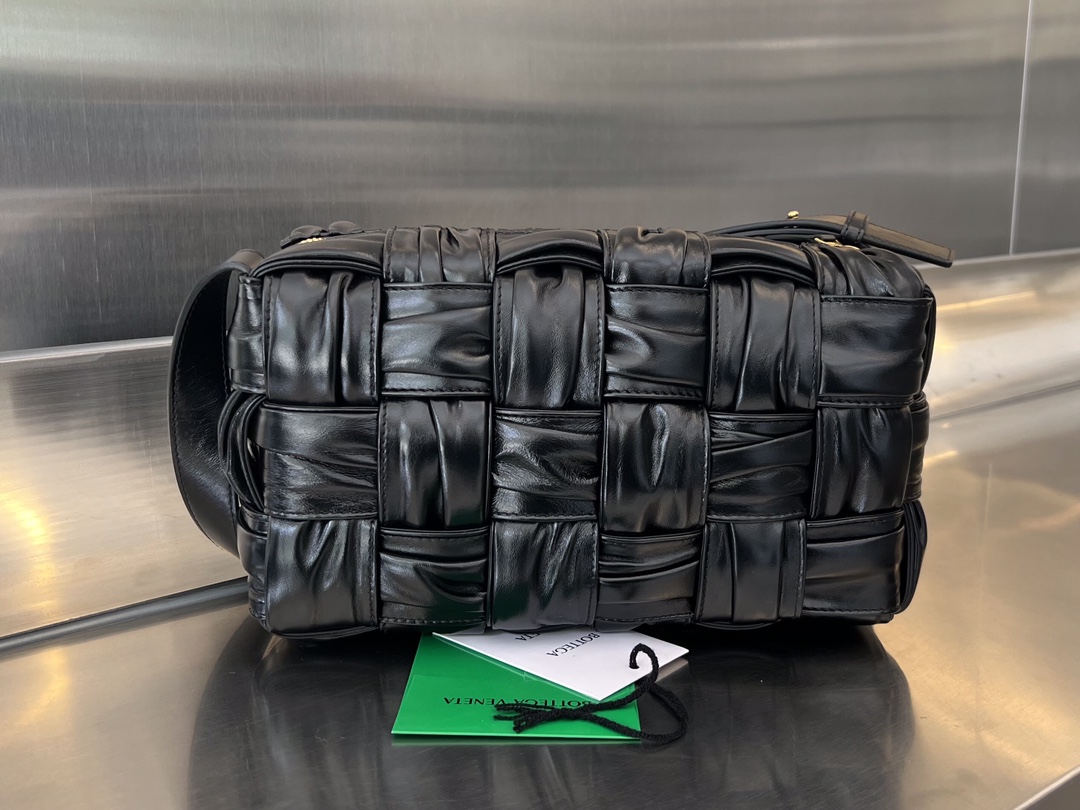 보테가의 새로운 디자인이 돋보이는 크로스백입니다. 독창적인 손으로 짜여진 주름 디자인이 매력적이며, 고급스러운 유광 소가죽과 양가죽으로 제작되어 있습니다.