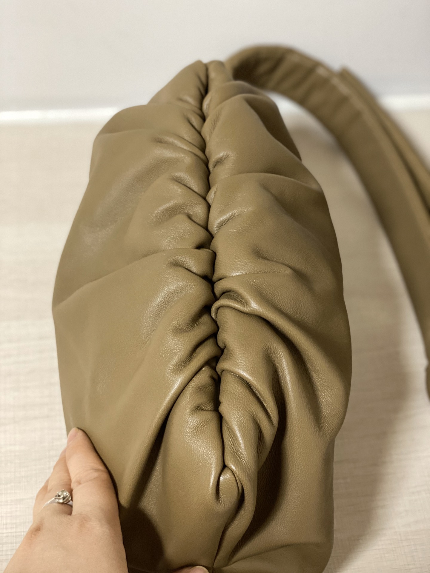 부드럽고 섬세한 나파 양가죽으로 제작된 클라우드 백입니다. 넉넉한 수납 공간을 갖추고 있어 일상 소지품을 편리하게 담을 수 있습니다.