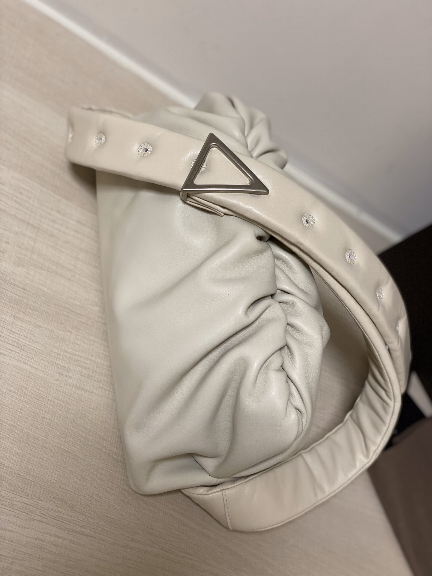 부드럽고 섬세한 나파 양가죽 소재로 제작된 클라우드 백입니다. 넉넉한 수납 공간을 제공하며, 내부에는 지퍼 포켓이 있어 소지품을 안전하게 보관할 수 있습니다.