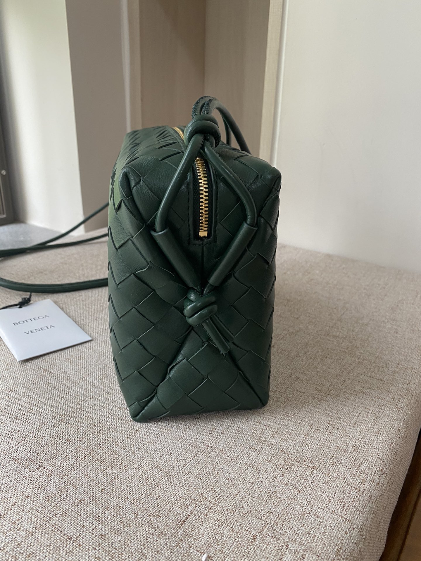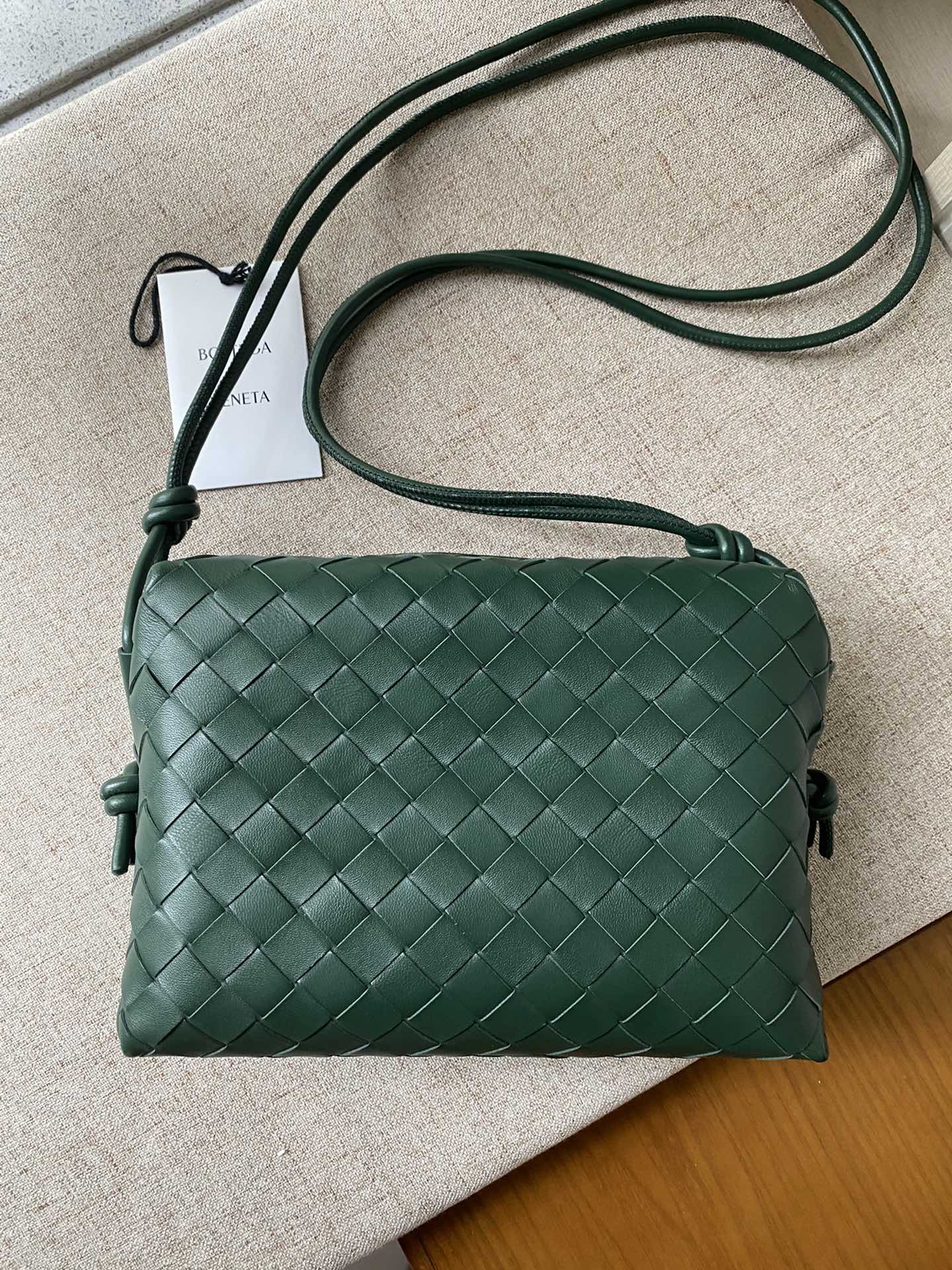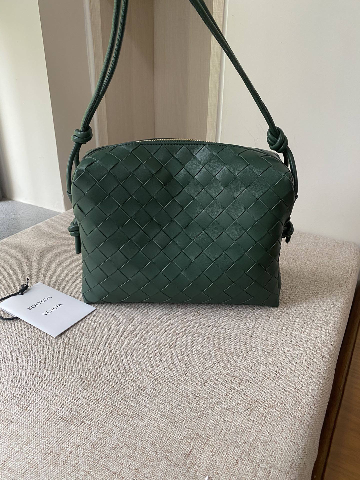 부드러운 소가죽으로 제작된 클래식 편직 가방입니다.