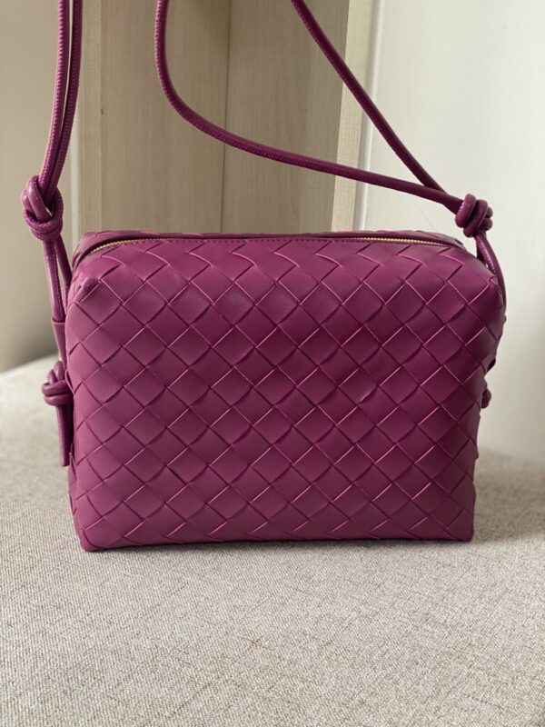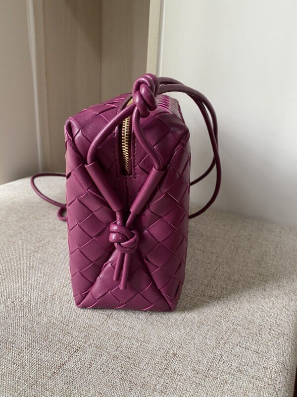 부드러운 양가죽으로 제작된 클래식 편직 로고 미니백입니다.