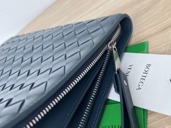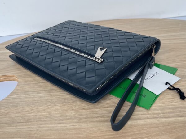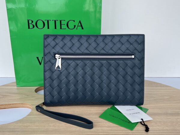 부드러운 소가죽으로 제작된 이 손가방은 BV의 클래식 편직 디자인이 돋보입니다.