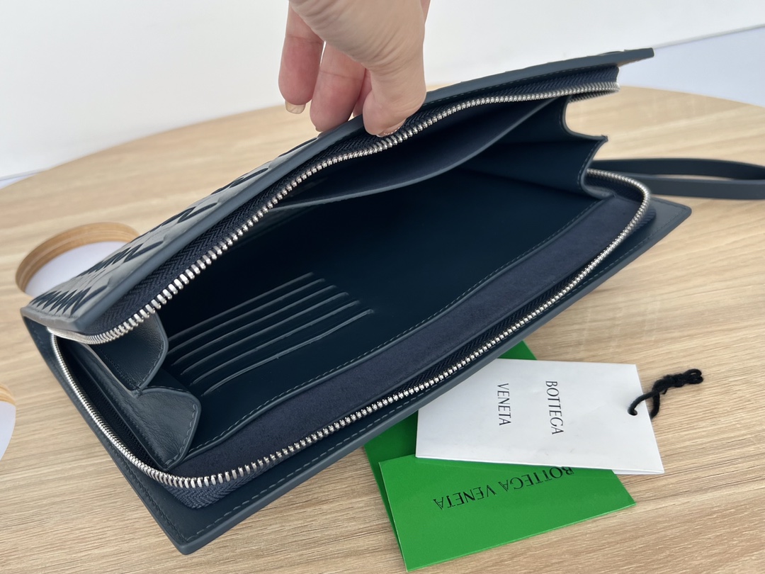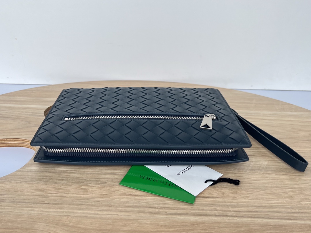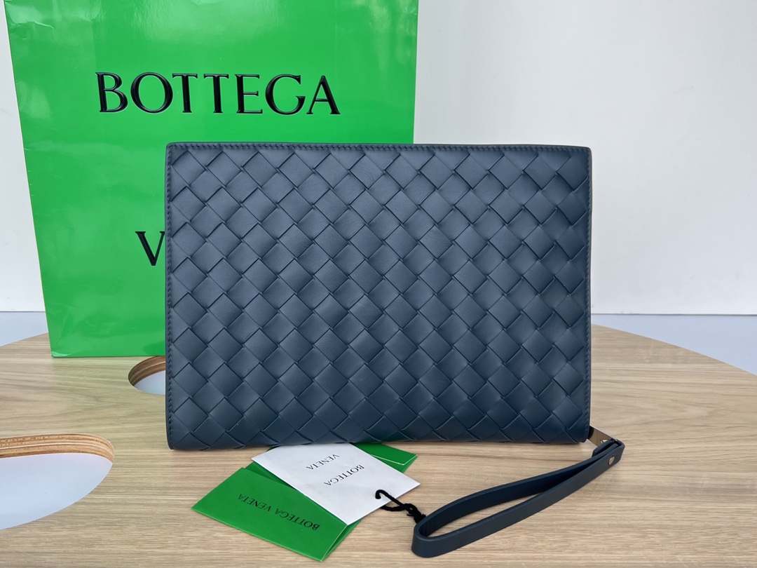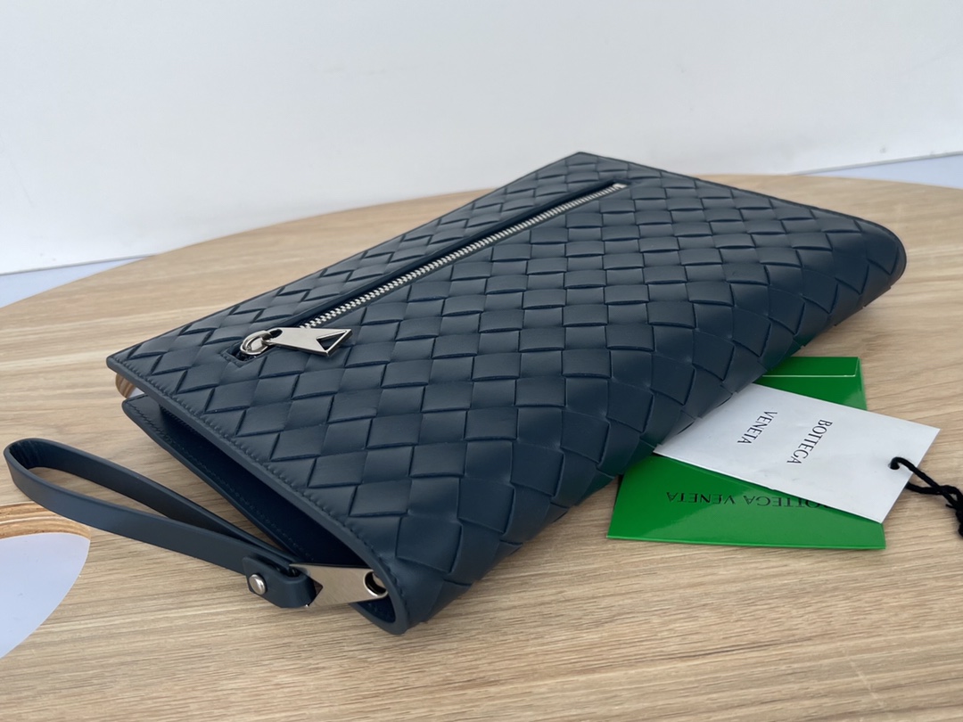 부드러운 소가죽으로 제작된 이 손가방은 BV의 클래식 편직 디자인이 돋보입니다.
