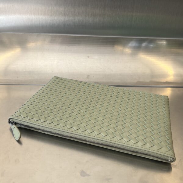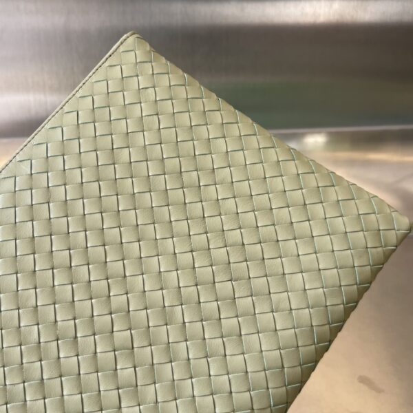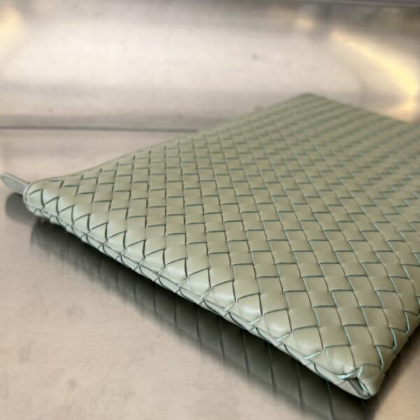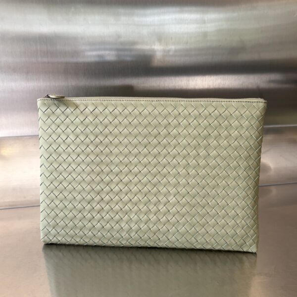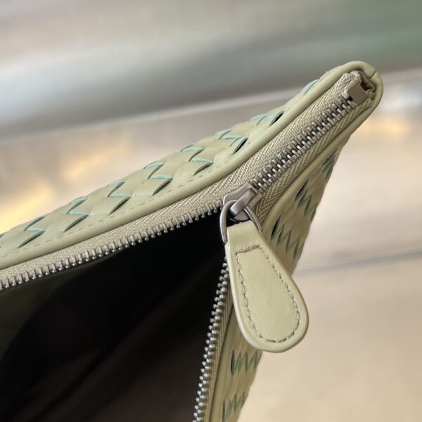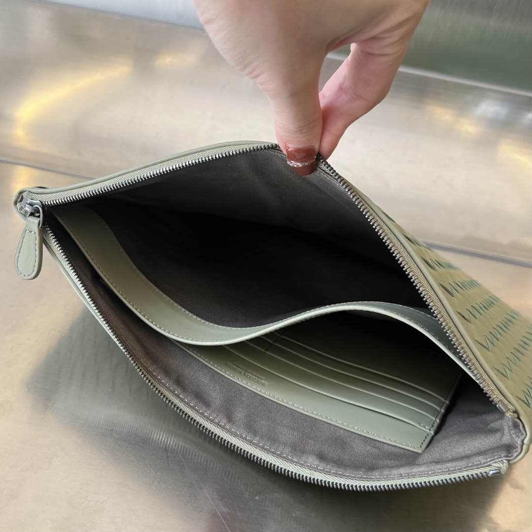 보테가의 클래식 편직 손가방은 업그레이드된 디자인으로 실용성을 더했습니다. 내부에는 수납 공간과 카드 슬롯이 있어 소지품을 깔끔하게 정리할 수 있습니다.