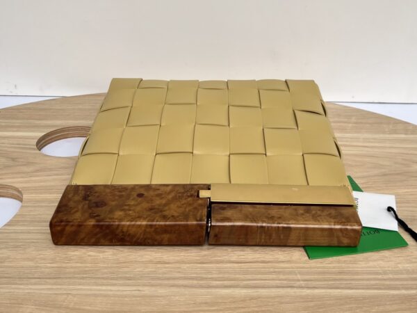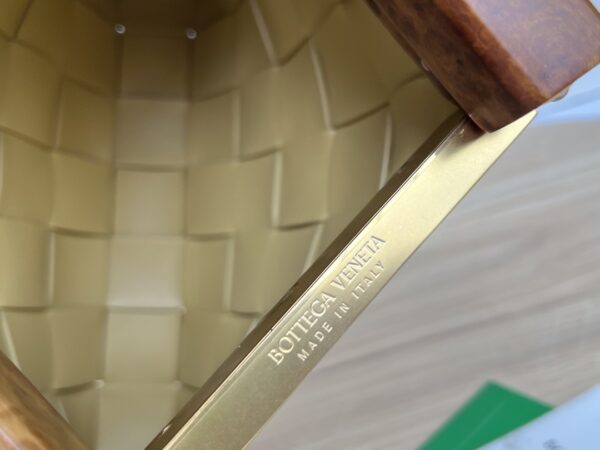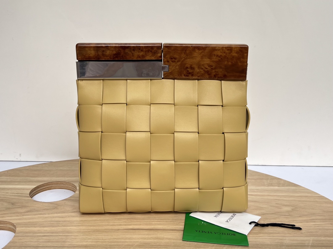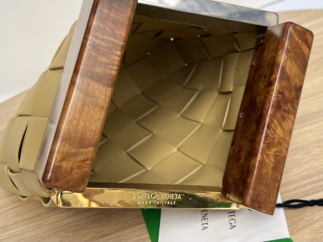 보테가의 클래식 편직 요소가 돋보이는 미니백입니다. 고급 나파 양가죽과 자연 소재인 측백나무를 조화롭게 사용하여 독특한 매력을 발산합니다.