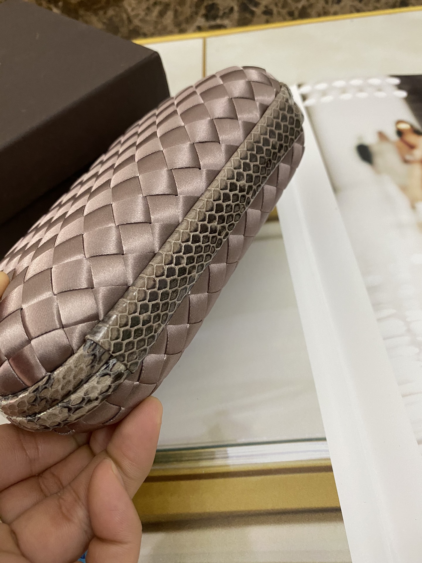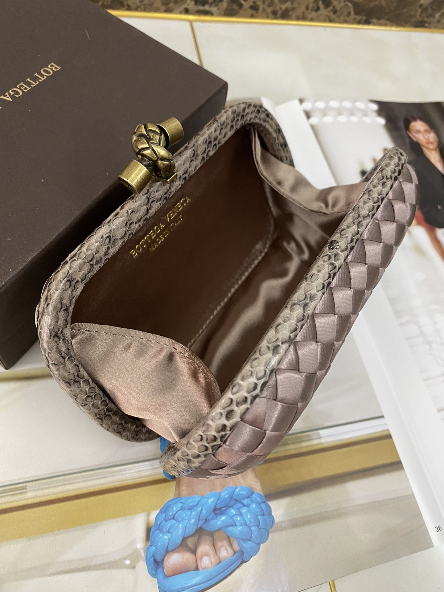 부드러운 그레이베이지 색상으로 다양한 스타일에 잘 어울리는 클러치백입니다.